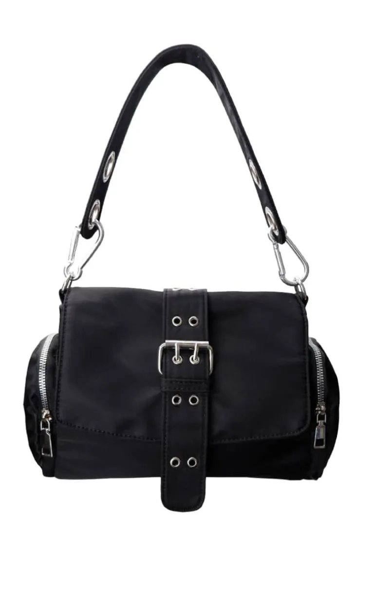 Denne taske har en masse sølv detajler, og justerebare remme.