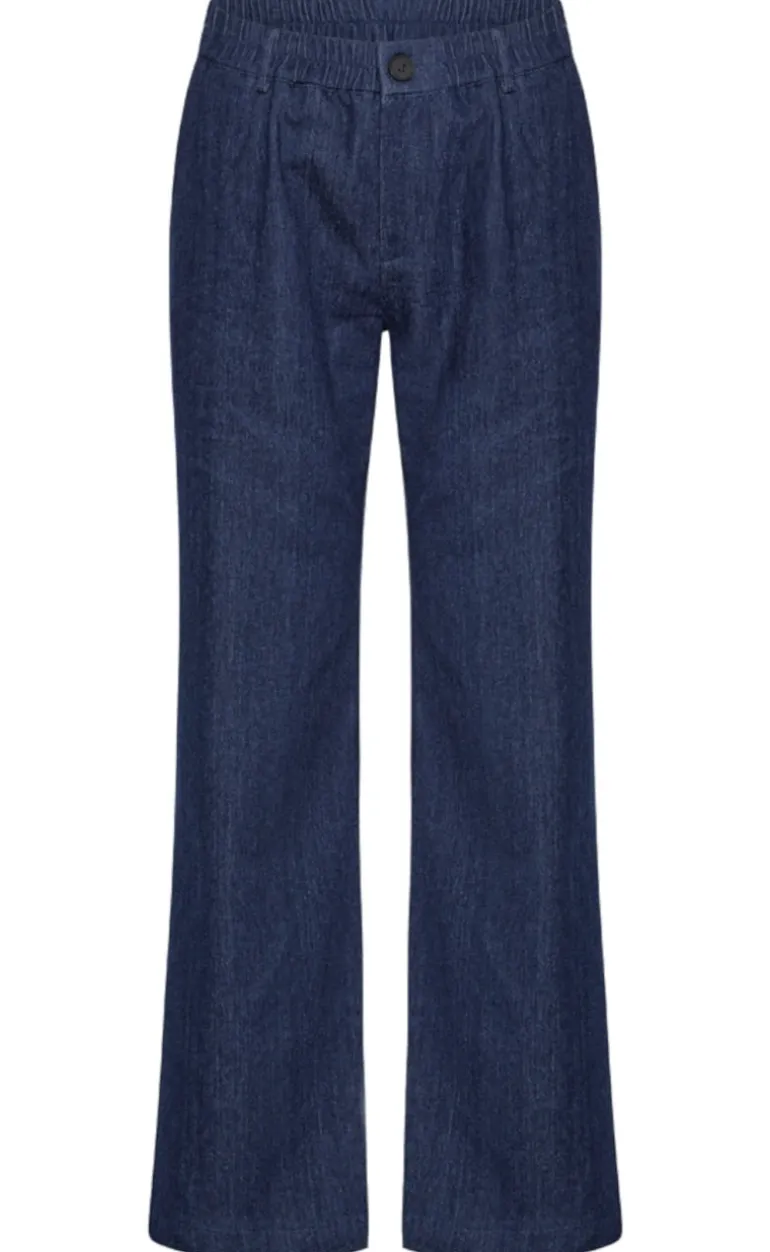 Disse flotte Roberta bukser kommer i en mørkeblå farve med elastik og knaplukning i taljen.