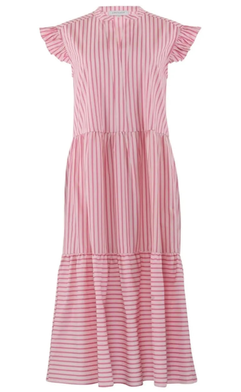 Feminin kjole fra Continue i et lyserødt print med striber.