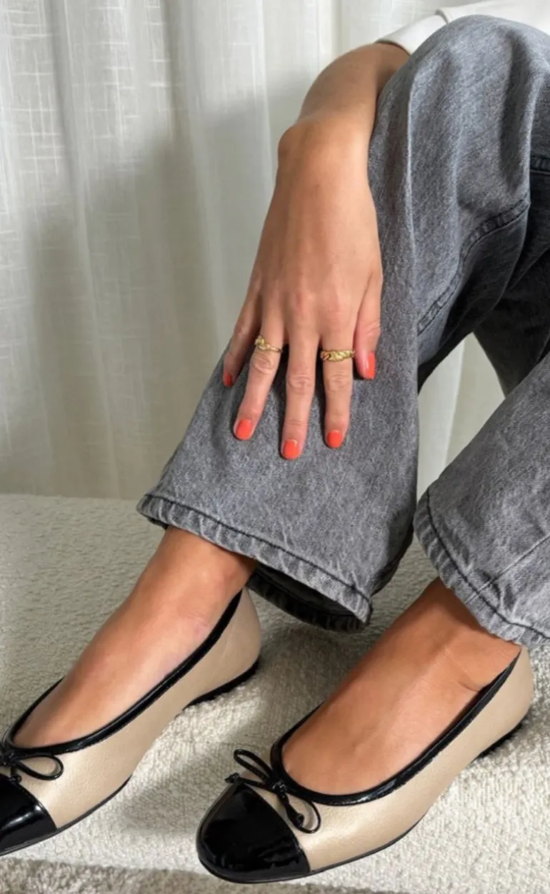 Smukke ballerinasko fra Copenhgaen Shoes i guld og sort.
