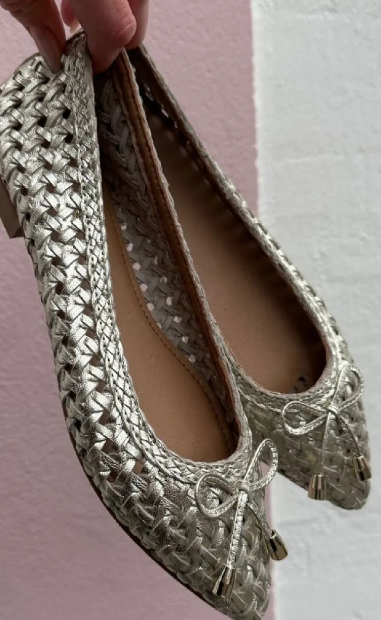 Flotte ballerinaer fra Copenhagen Shoes i en guld farve.
