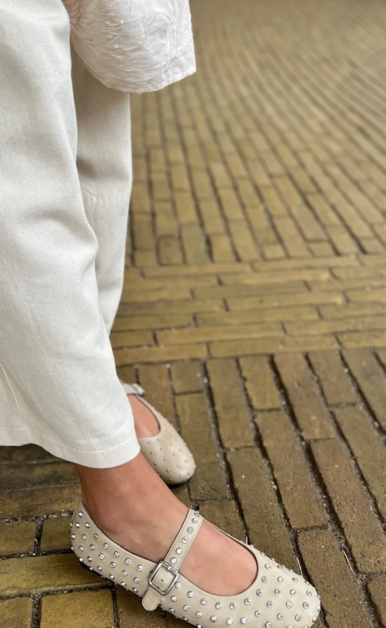 Smukke og yndige ballerinaer fra Copenhagen Shoes i beige med sølv sten.