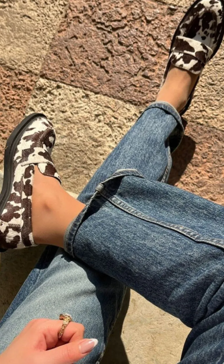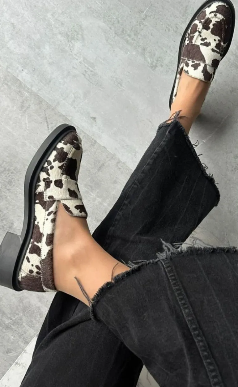Flotte loafers i eksklusivt hairon-læder med ko-print.