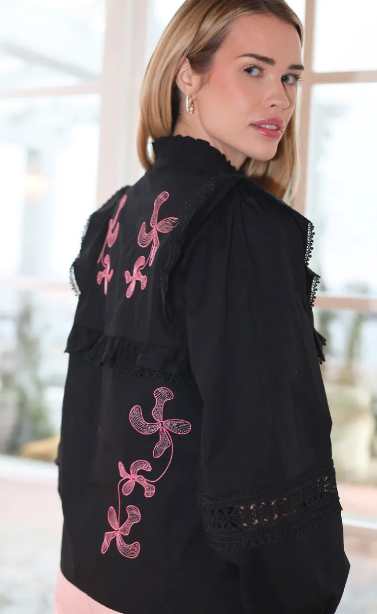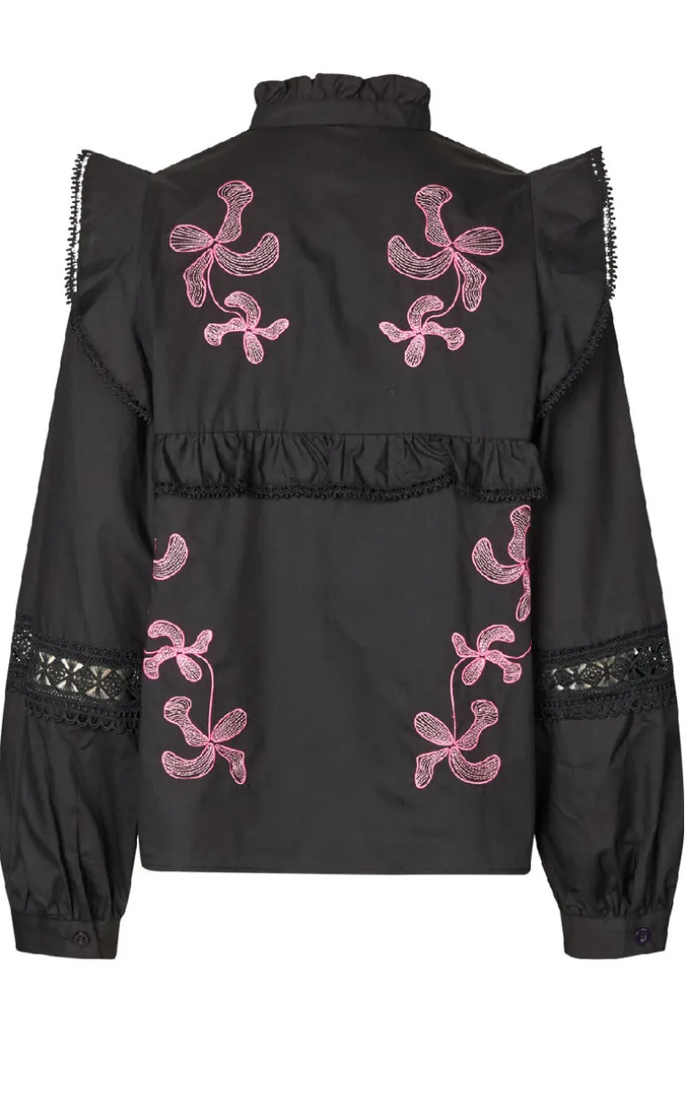 Lækker og unik skjorte fra Cras i sort, med lyserøde detaljer.