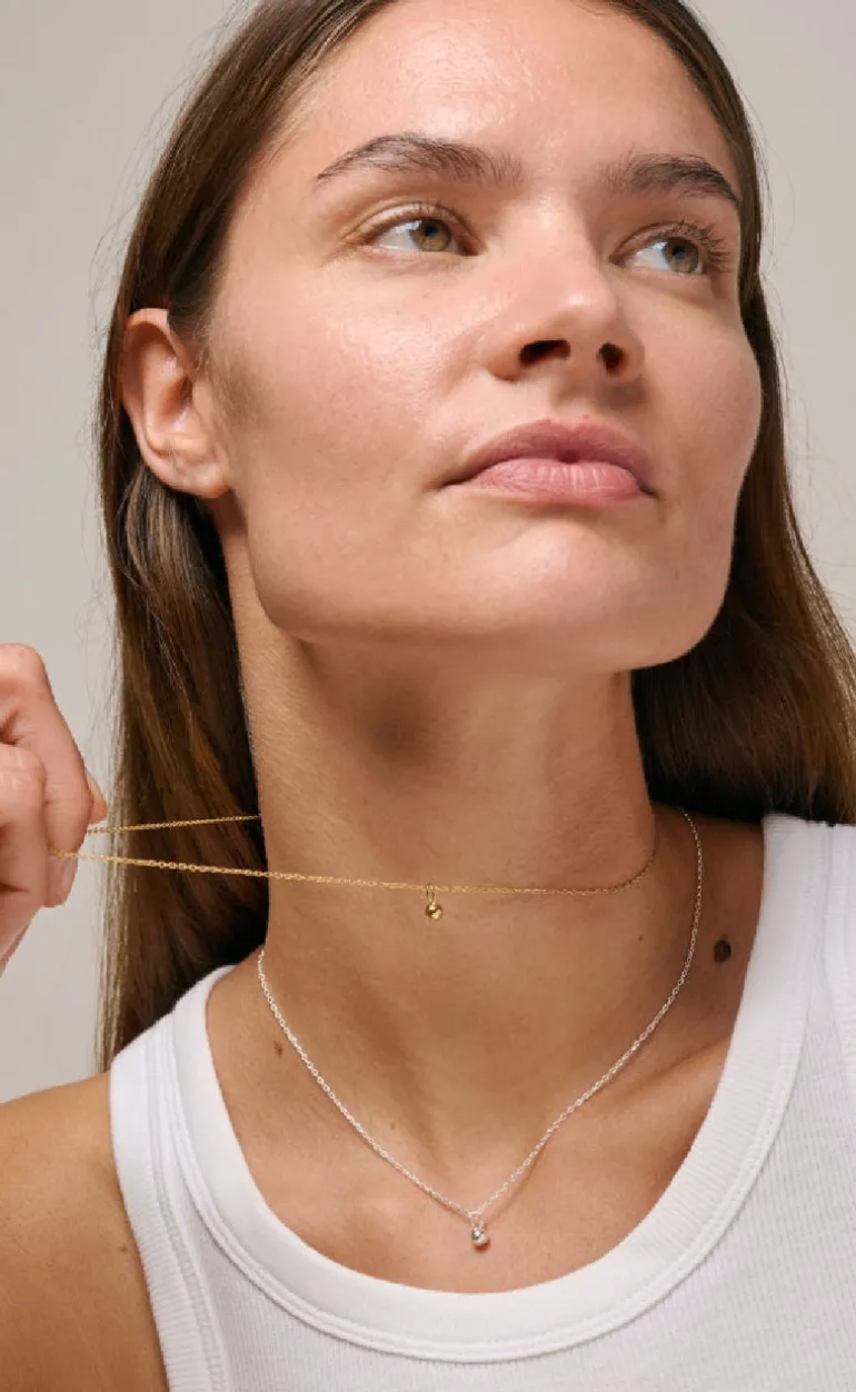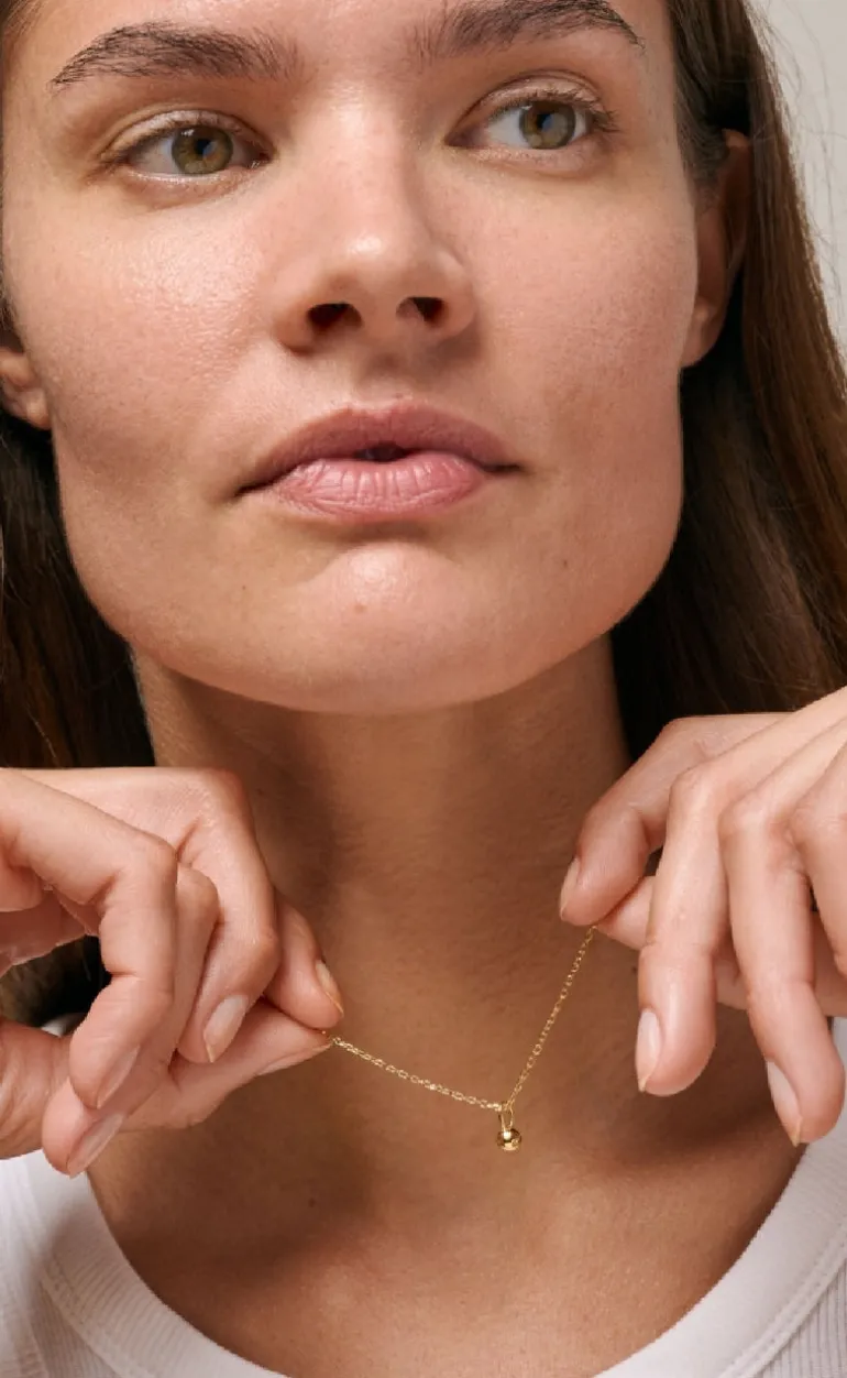 Yndig og nydeligt halskæde fra ENAMEL Copenhagen i en guld farve, med en lille kugle som vedæng.