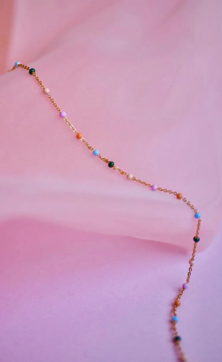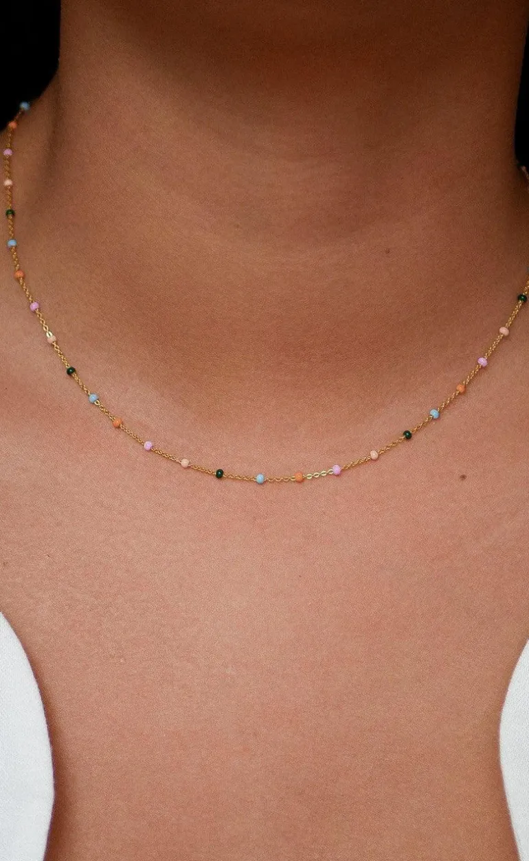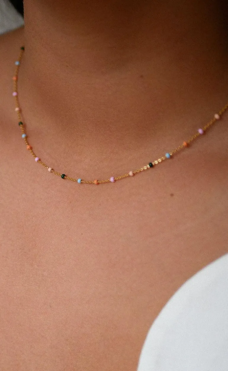 Lola Dreamy halskæde fra ENAMEL Copenhagen er i guld. Halskædens emaljer er i en masse forskellige farver, som gør at halskæden kan bruges til forskellige lejligheder.