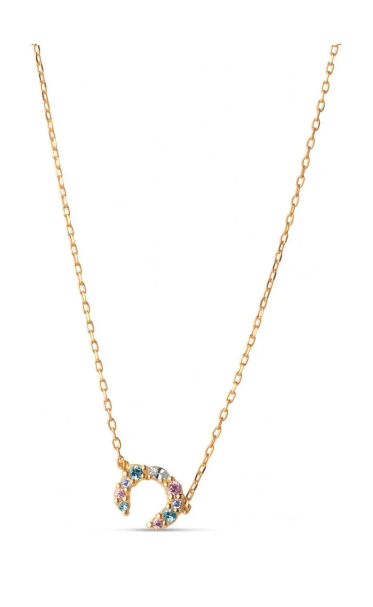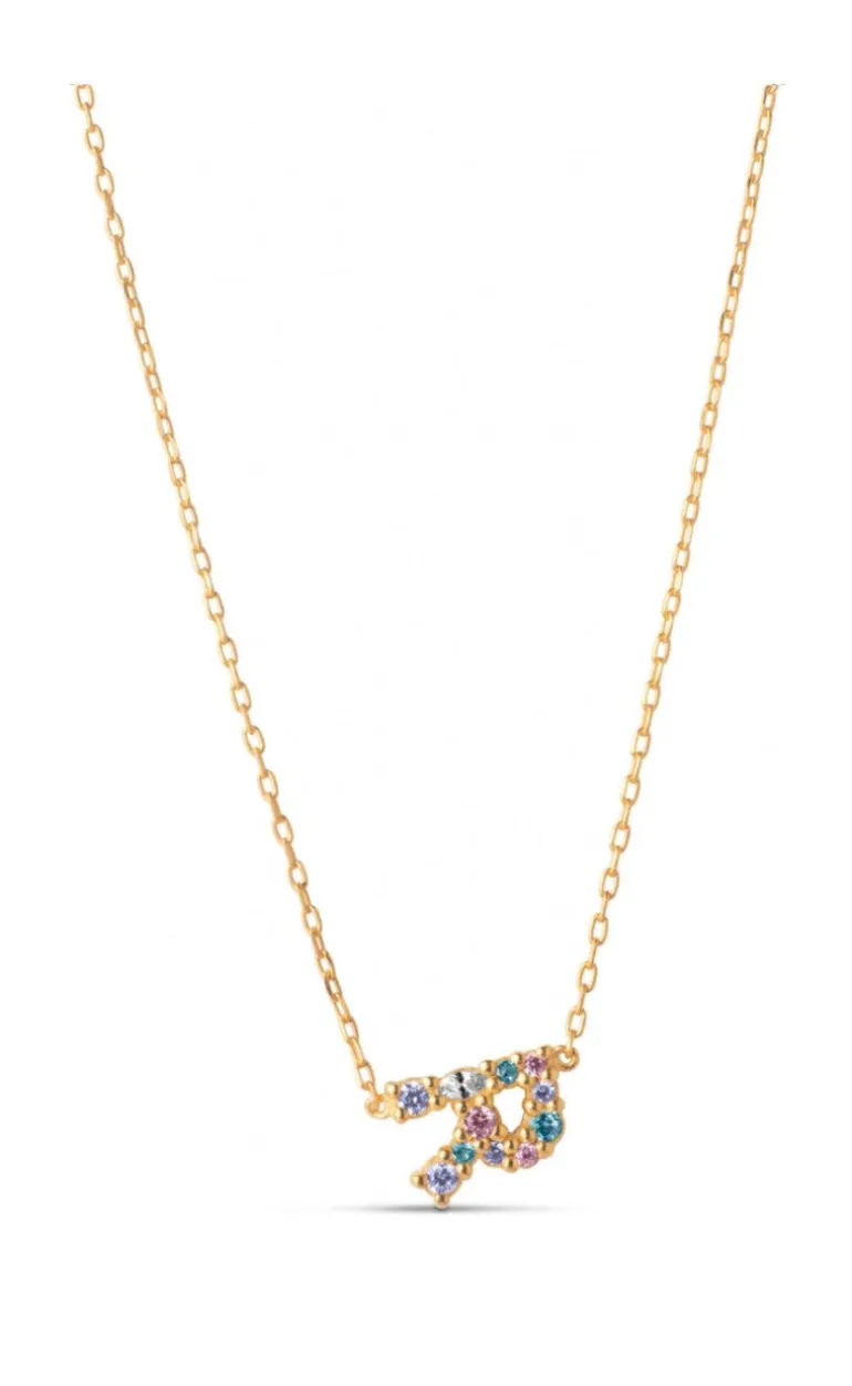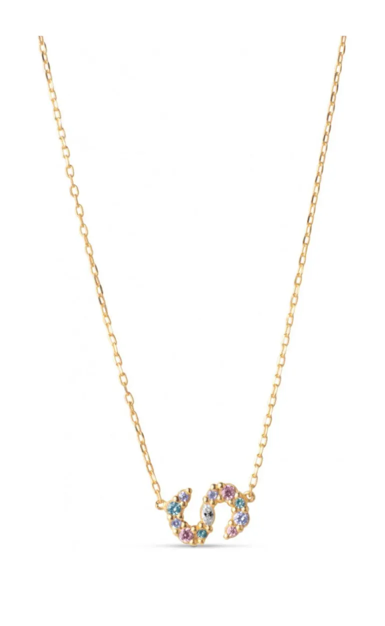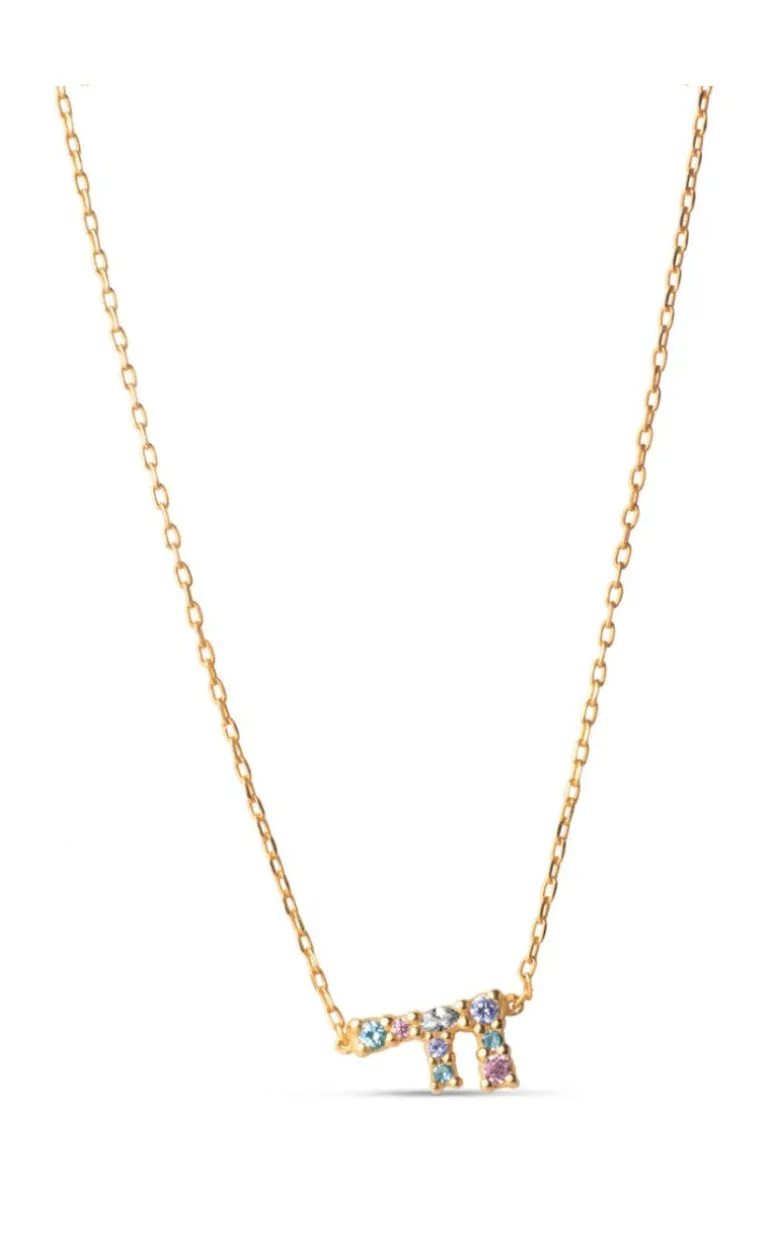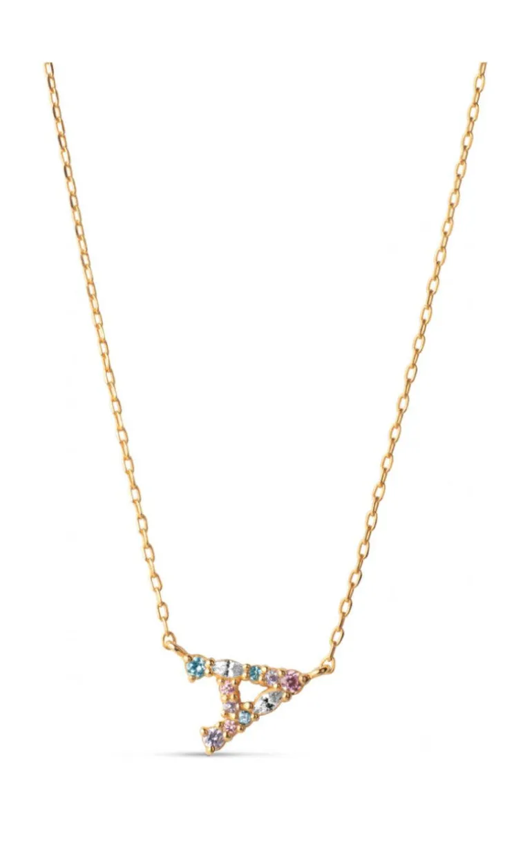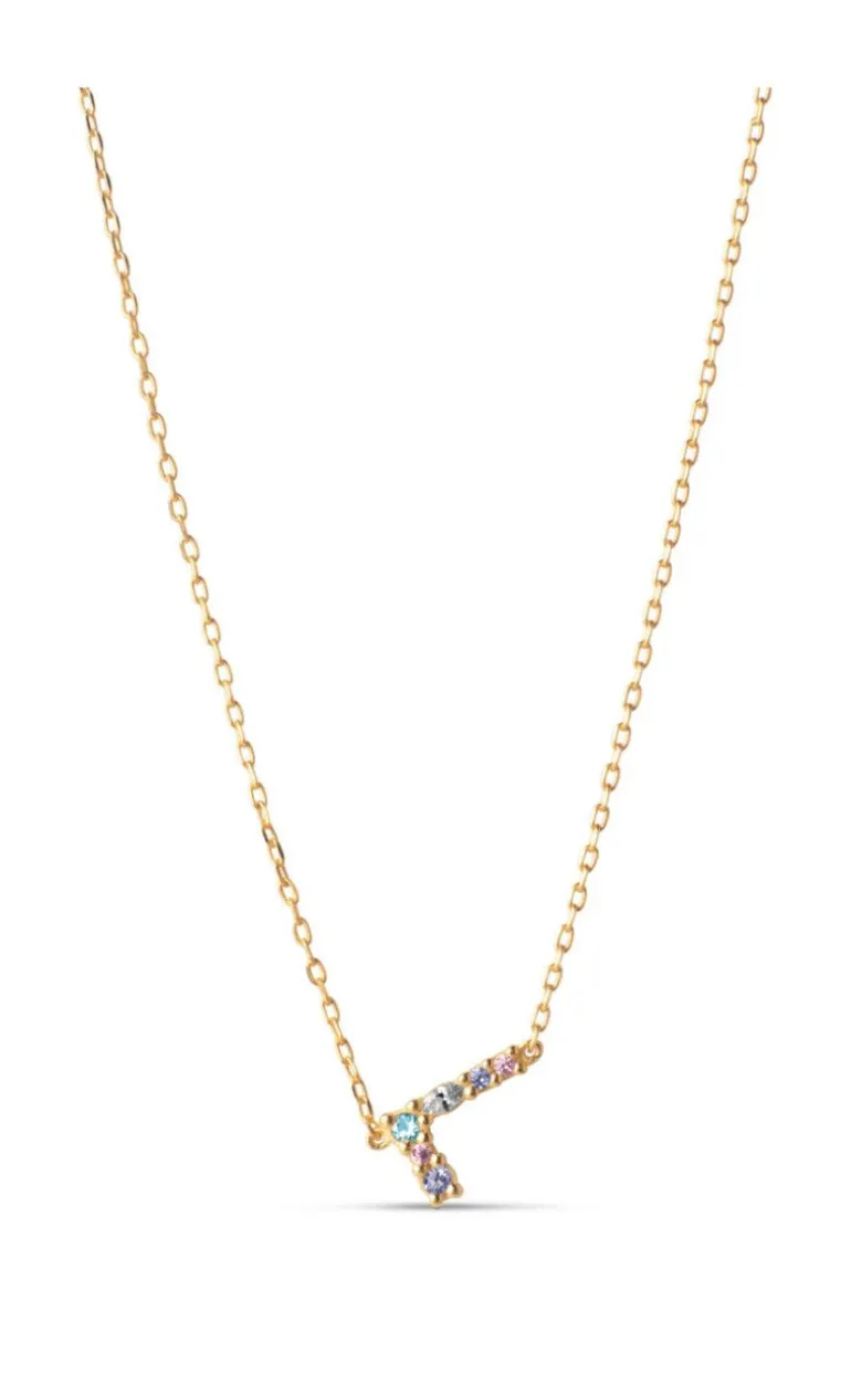 ENAMEL Copenhagen halskæde i guld med et fint bogstav-vedhæng med forskellig-farvede sten.