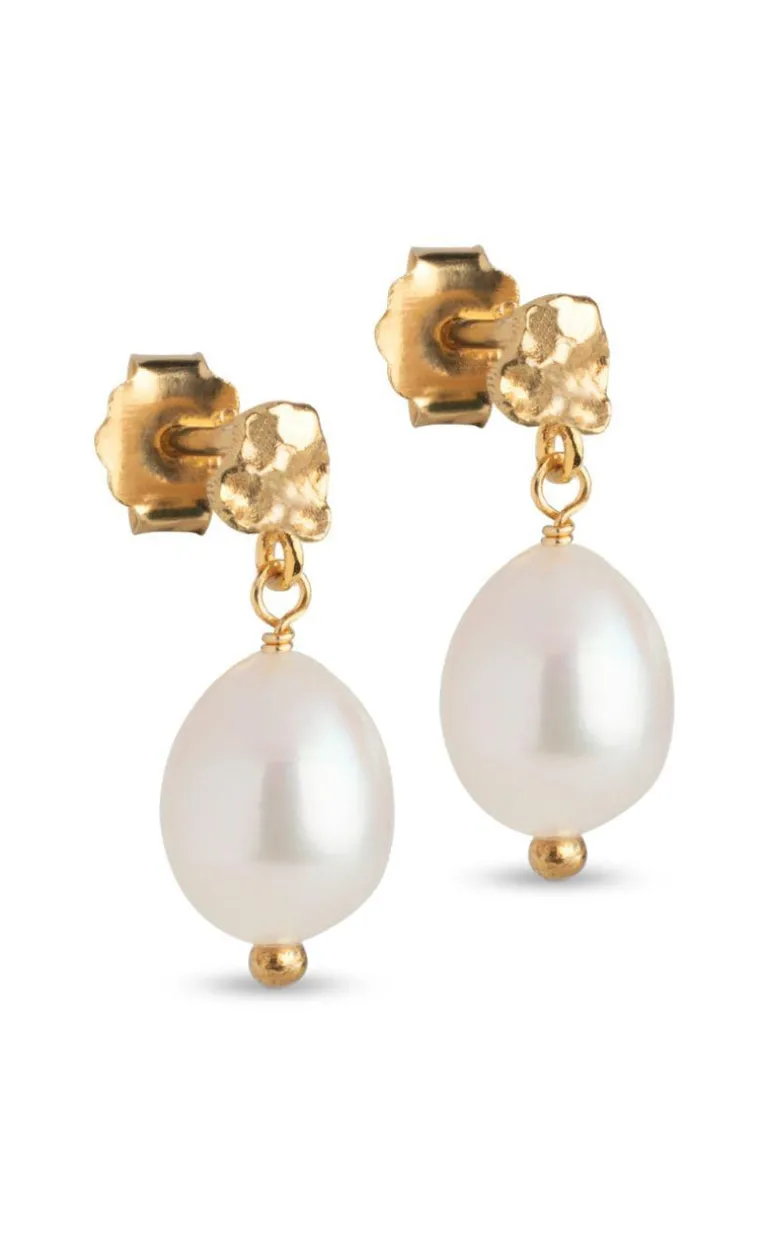 Poe pearl studs har lidt af det hele. Den lille håndlavede stud står i fin kontrast til den store, elegante perle. Øreringene har et sofistikeret udtryk, der især er god til hverdag, og perfekt til at lave et lækkert øreringe-miks. Poe pearl består af 925 sterlingsølv belagt med 18 karat guld og en smuk, dråbeformet ferskvandperle.