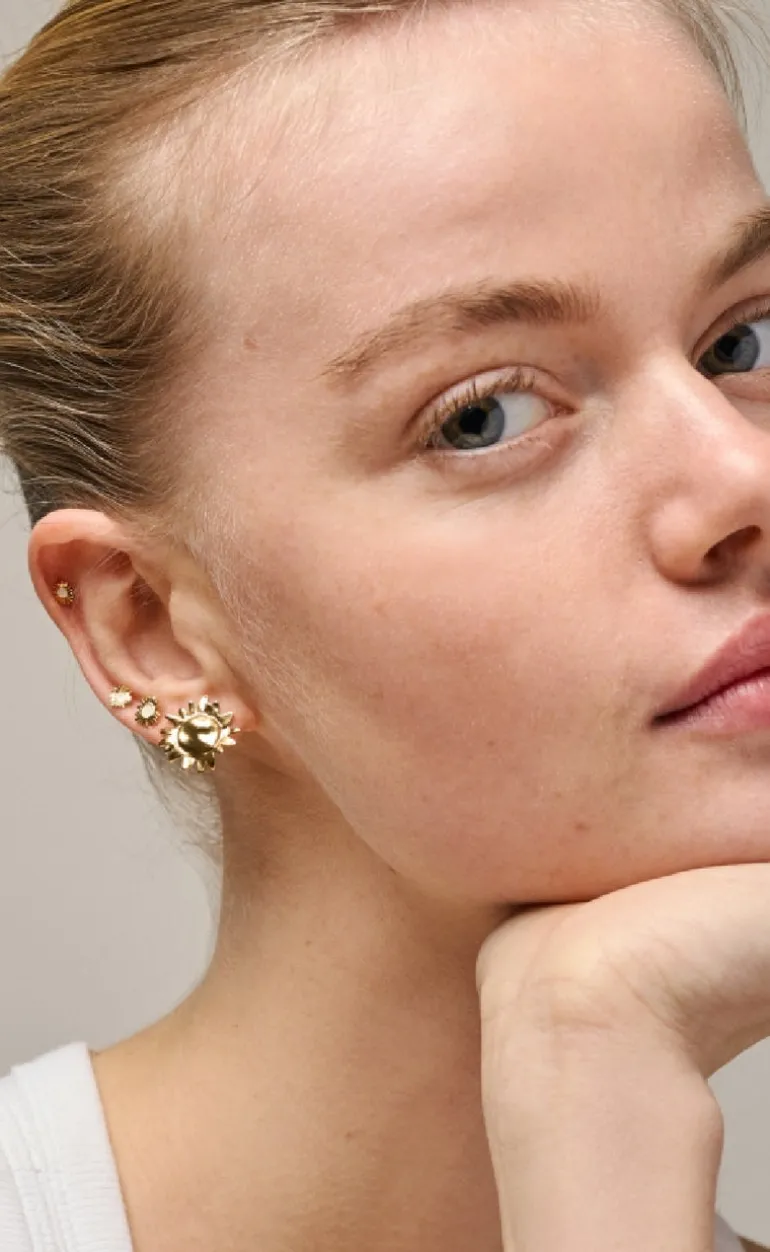 Søde ørestikkere fra ENAMEL Copenhagen i guld, formet som en sol.