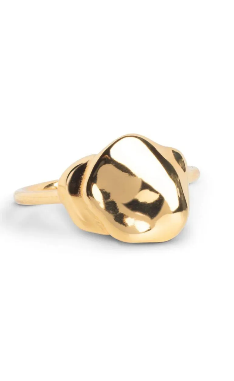 Sahara-ringen har to overlappende plader, der giver dybde og et unikt look, inspireret af ørkenens sandbanker. Den er både enkel, feminin og justerbar, og fås i to størrelser – en perfekt favoritring.