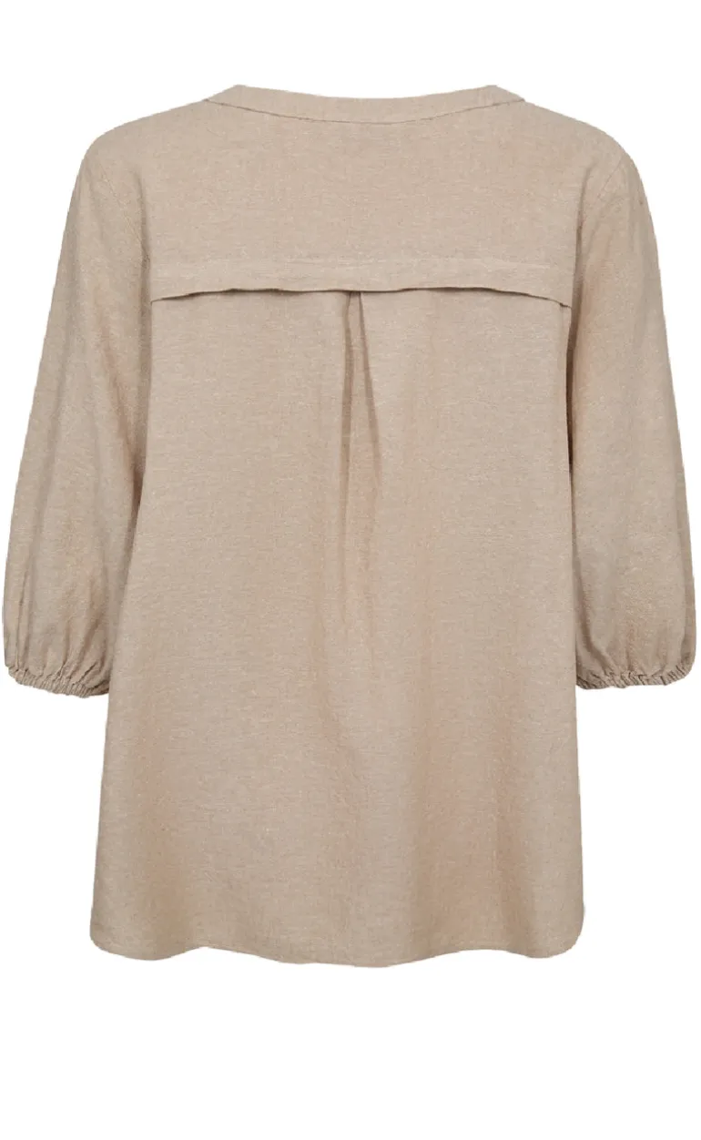 Feminin bluse fra Freequent i beige, fremstillet i en dejlig hør kvalitet.
