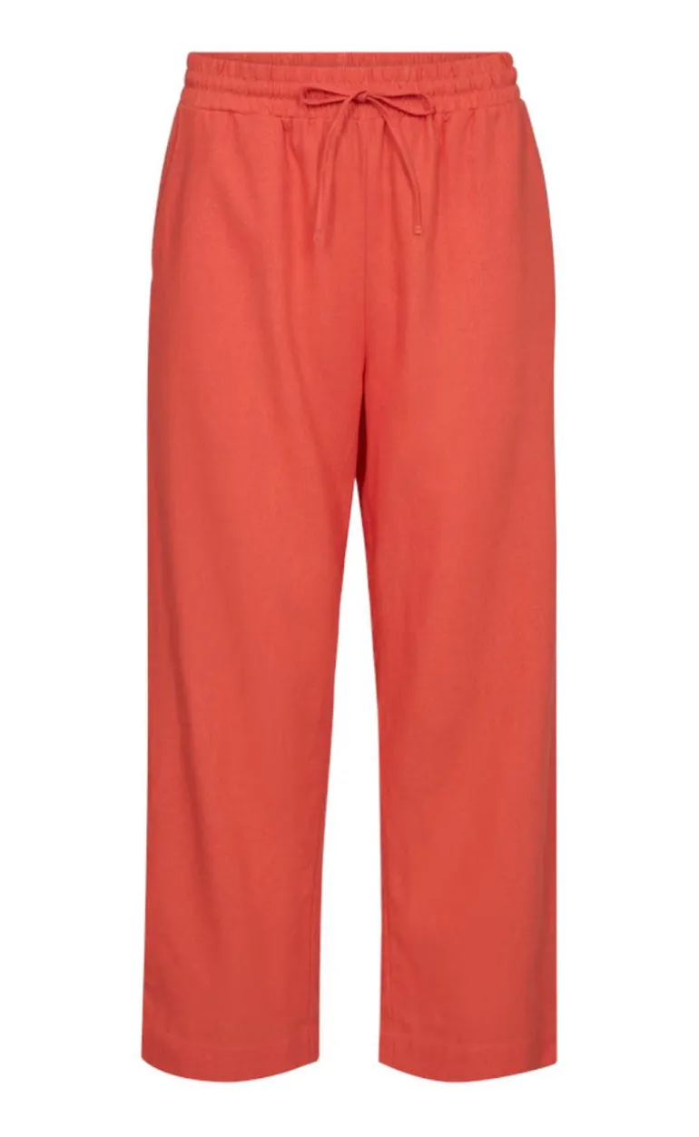 Bukserne er i hørkvalitet og har elastikkant, samt snøre i taljen.