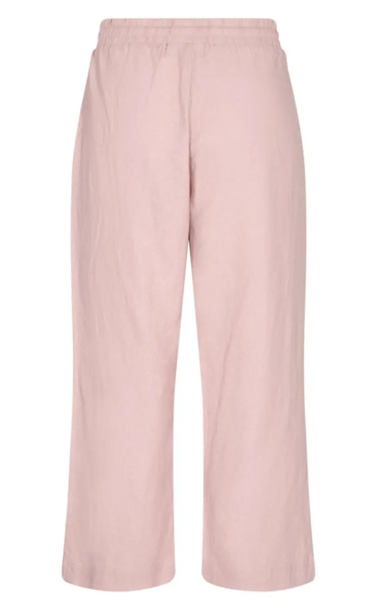 Bukserne er i hørkvalitet og har elastikkant, samt snøre i taljen.