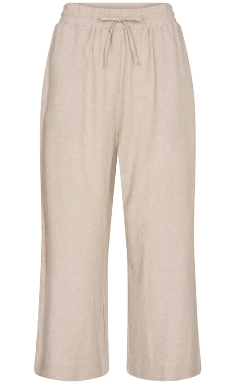 Bukserne er i hørkvalitet og har elastikkant, samt snøre i taljen.