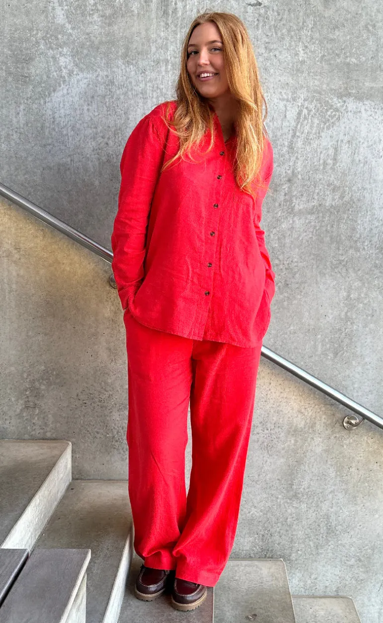 Lækre, lange hør-bukser fra Freequent i rød.