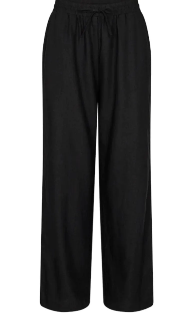Bukserne er i hørkvalitet og har elastikkant, samt snøre i taljen.