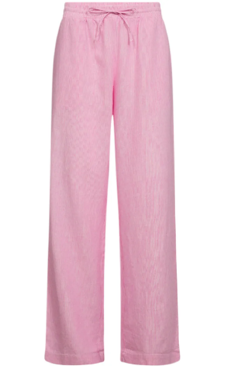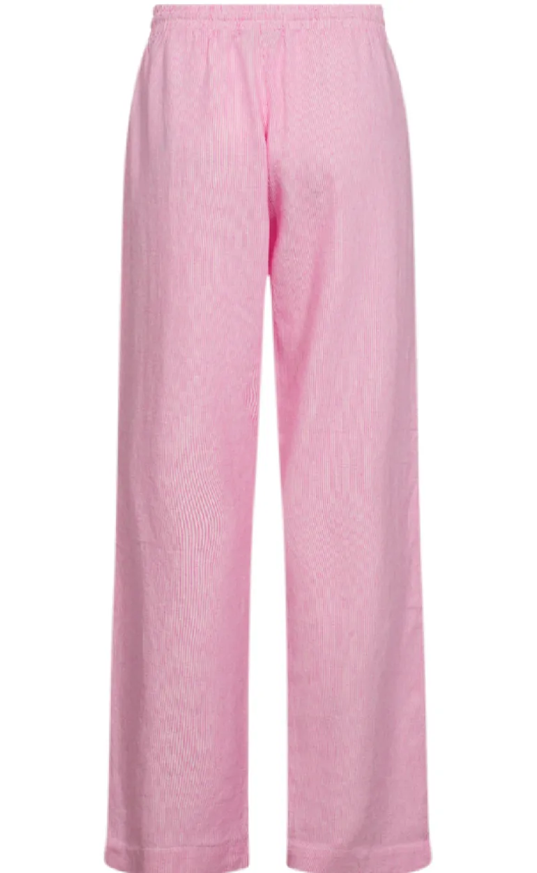 Lækre, lange hør-bukser fra Freequent i lyserøde og hvide striber.
