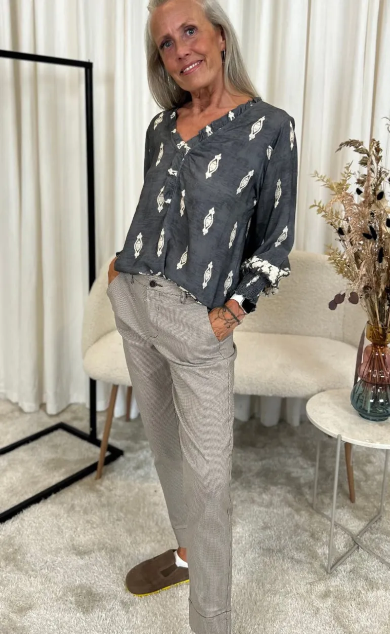 Bukserne har bæltestropper og er lavet en blød kvalitet med print.