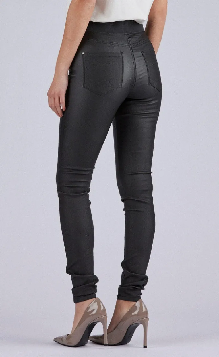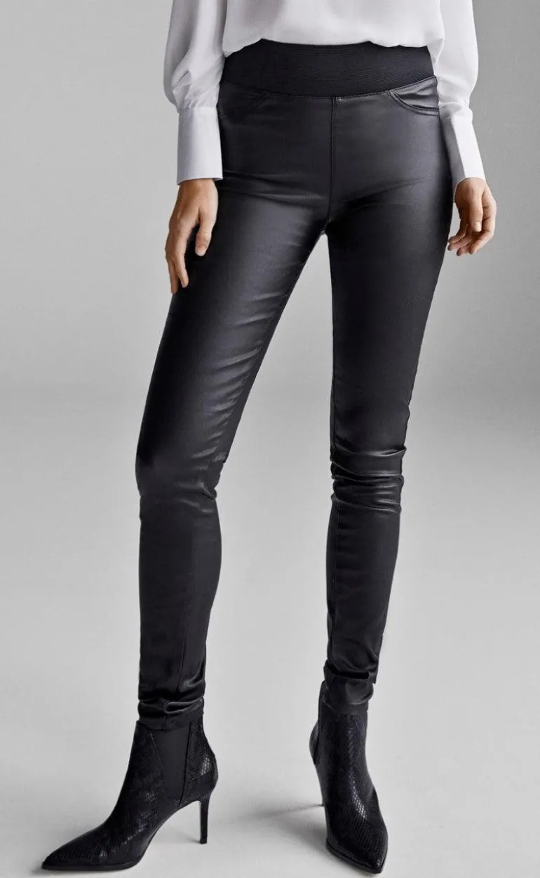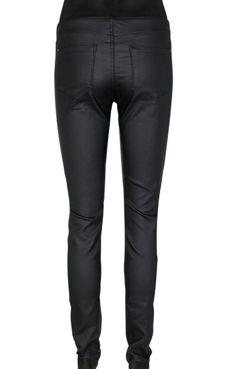 Virkelig lækre og strækbare bukser fra Freequent i sort læder look med smalle ben.