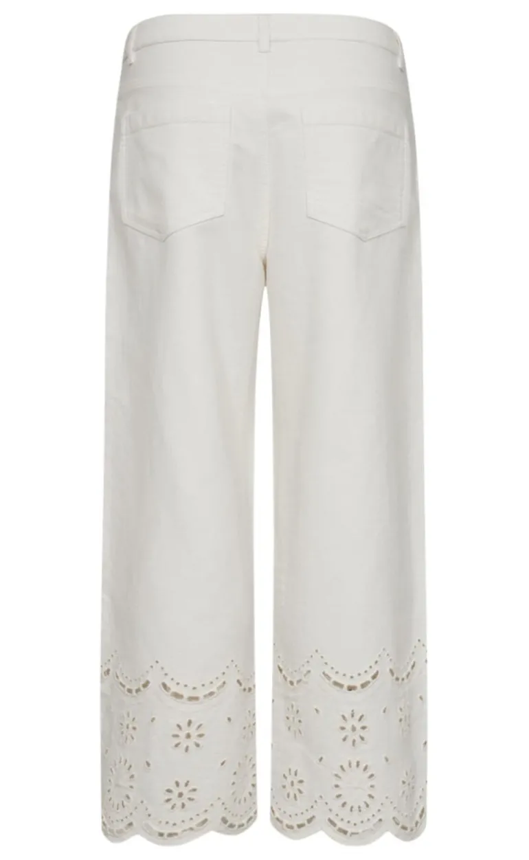 Pæne hvide jeans, med blonder i bunden og vide ben.