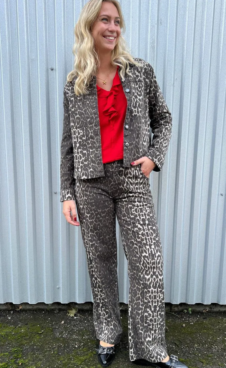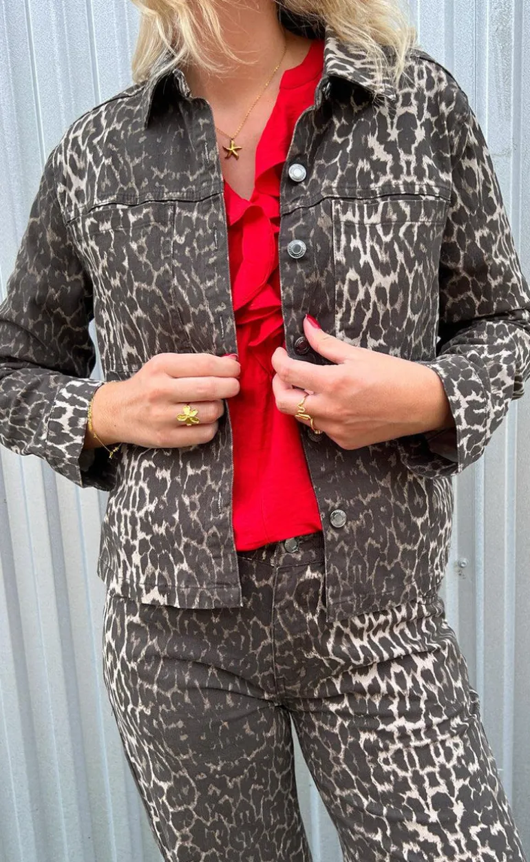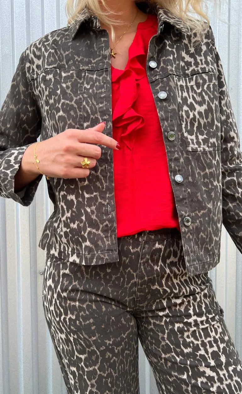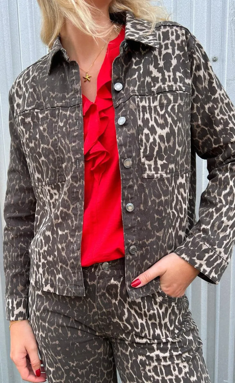Denim jakke fra Freequent i et leopard print.