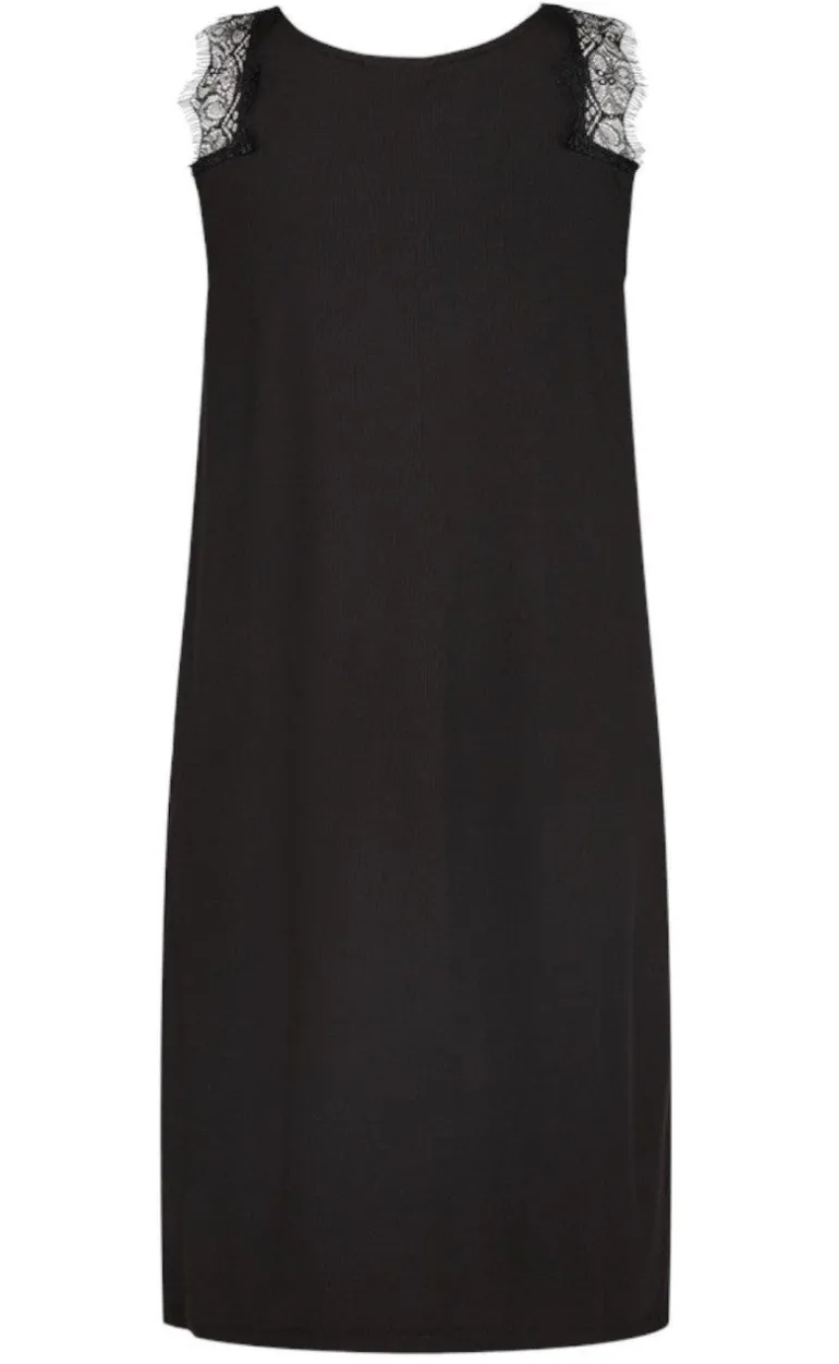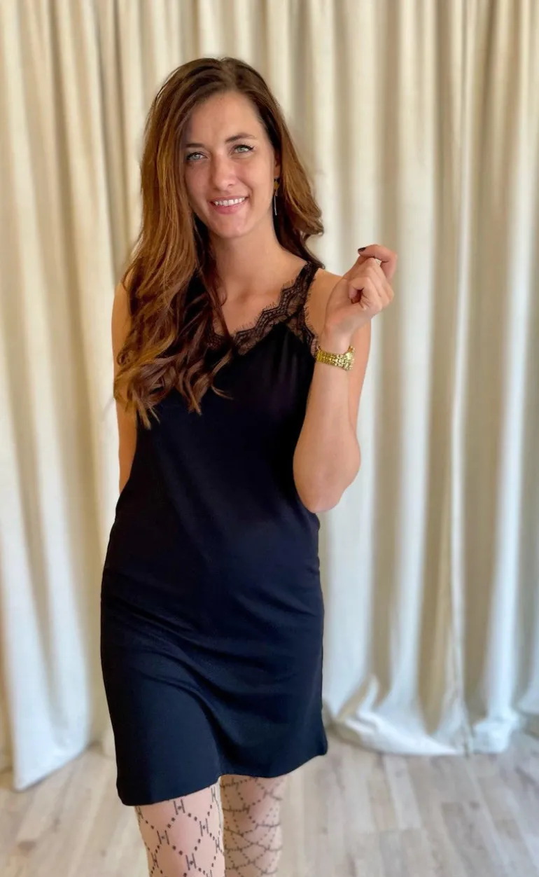 Flot kjole med blonder fra FreeQuent i sort, der er perfekt til basicgarderoben.