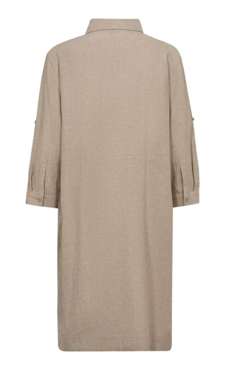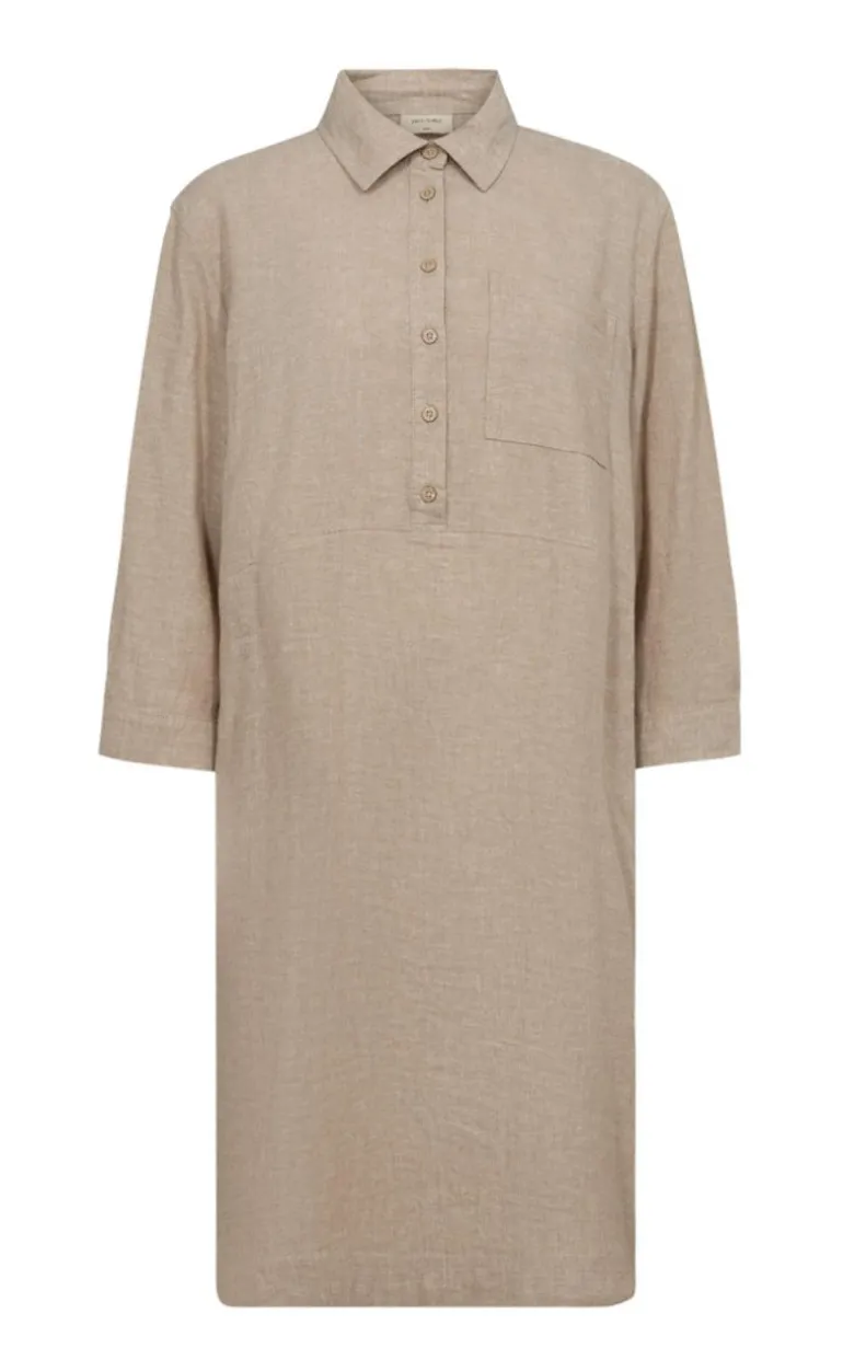 Den sødeste hør kjole fra Freequent i sandfarvet.