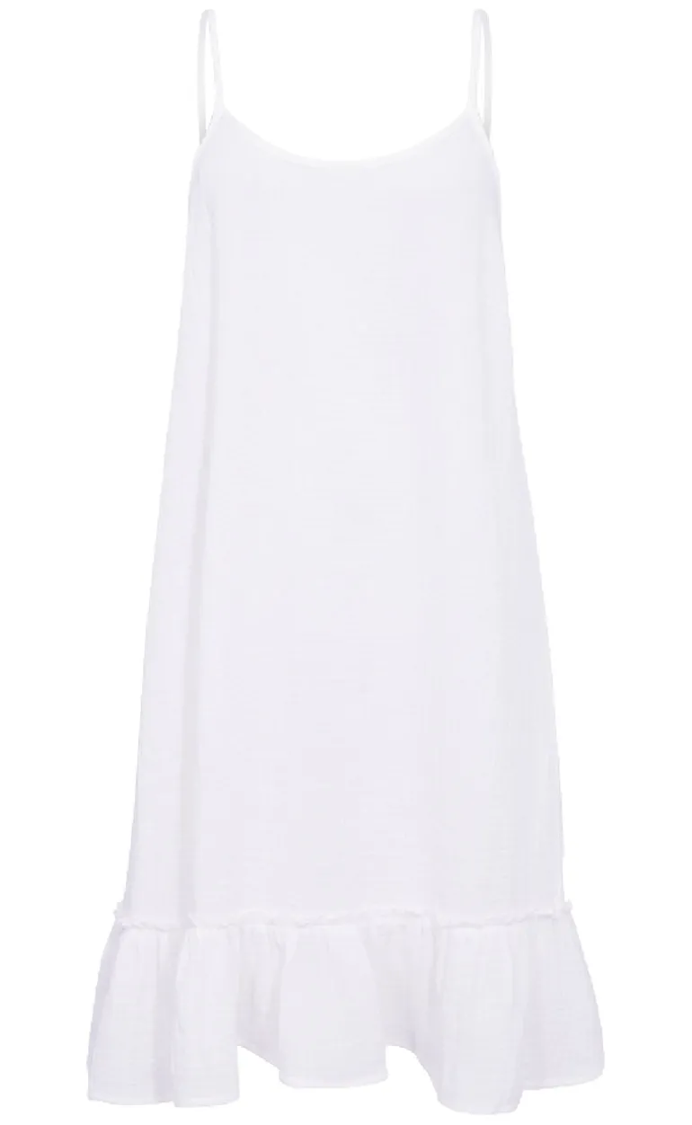 Luftig kjole fra Freequent i hvid.