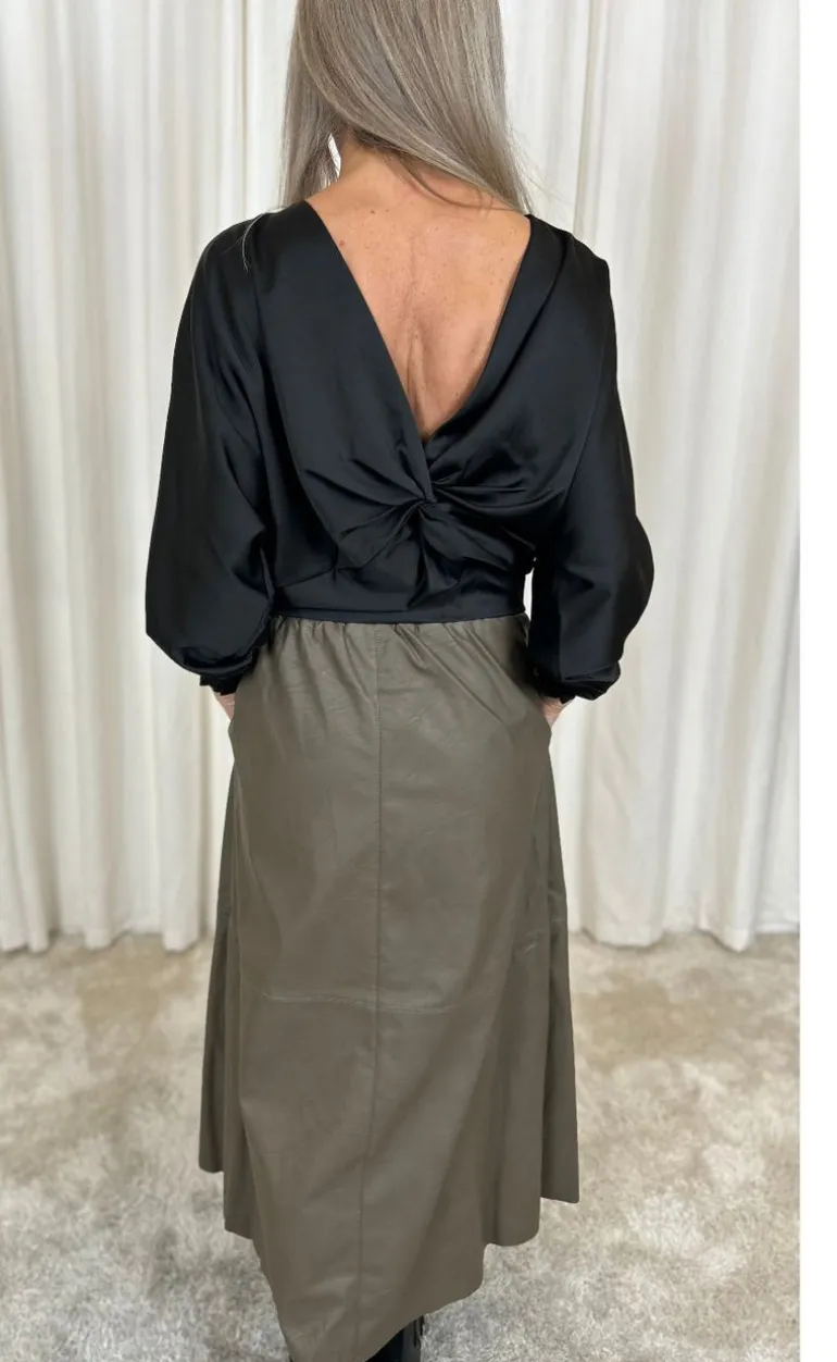 Nederdelen er enkel i modellen med elastik bagpå og sidelommer.