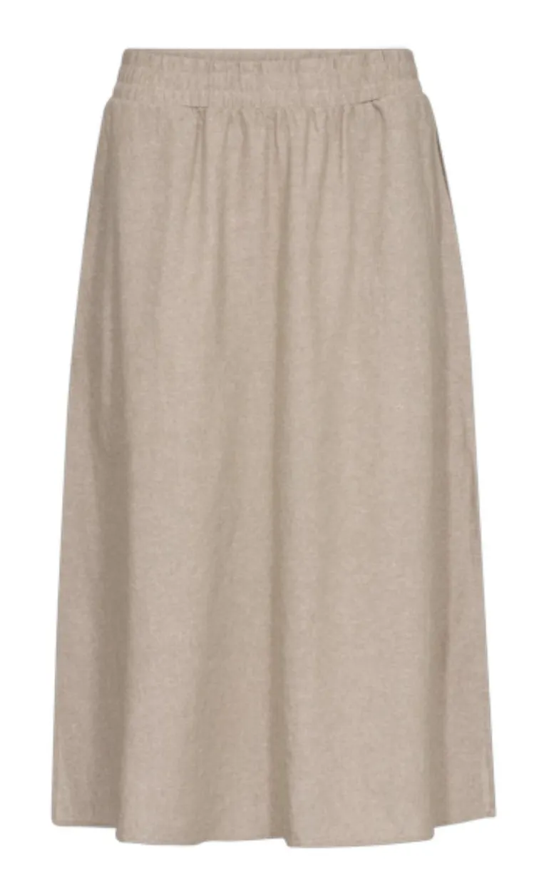 Fin hør nederdel fra Freequent i sand.