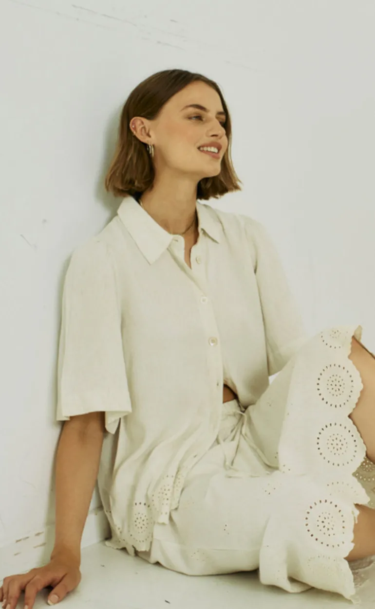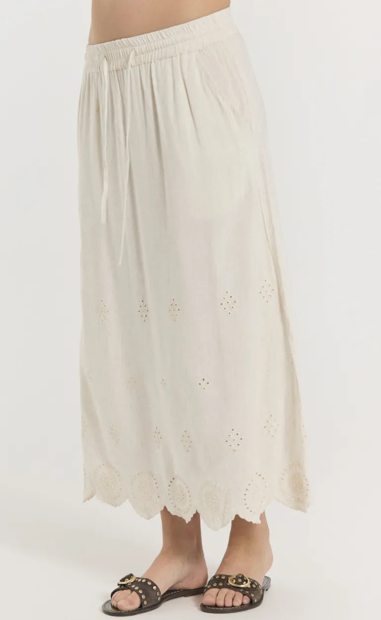 Nederdelen har elastik i taljen og blonde detalje i bunden.