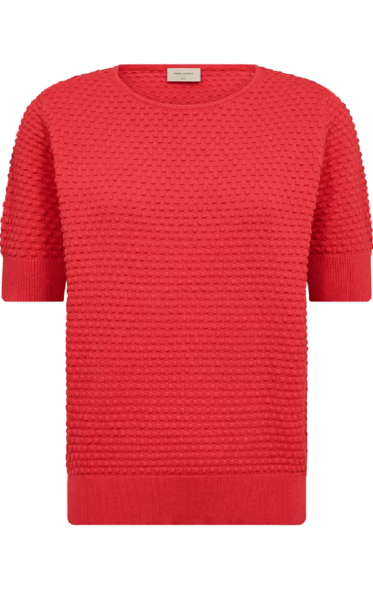 Lækker strik pullover fra Freequent i rød.