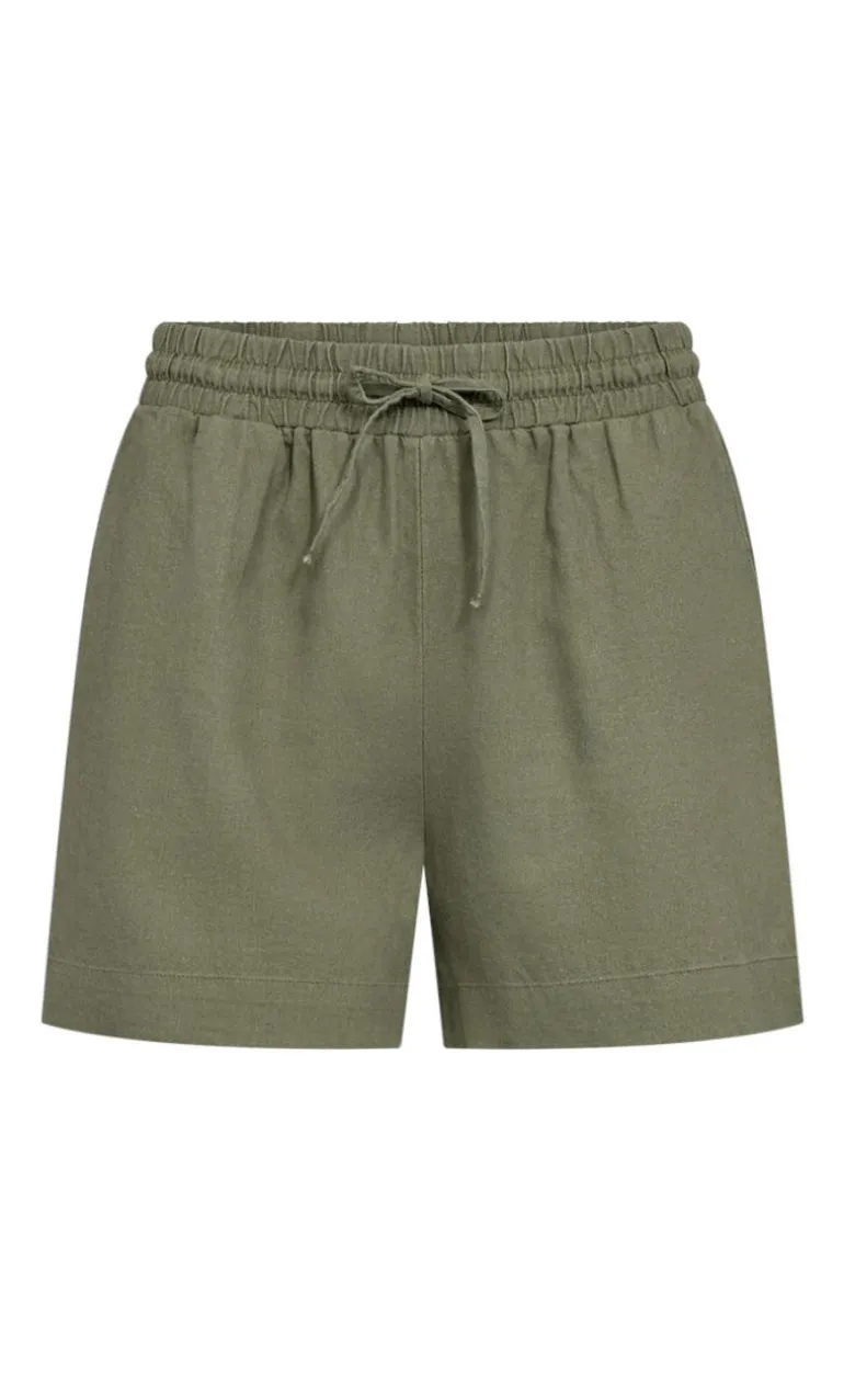 Bukserne er i hørkvalitet og har elastikkant, samt snøre i taljen.