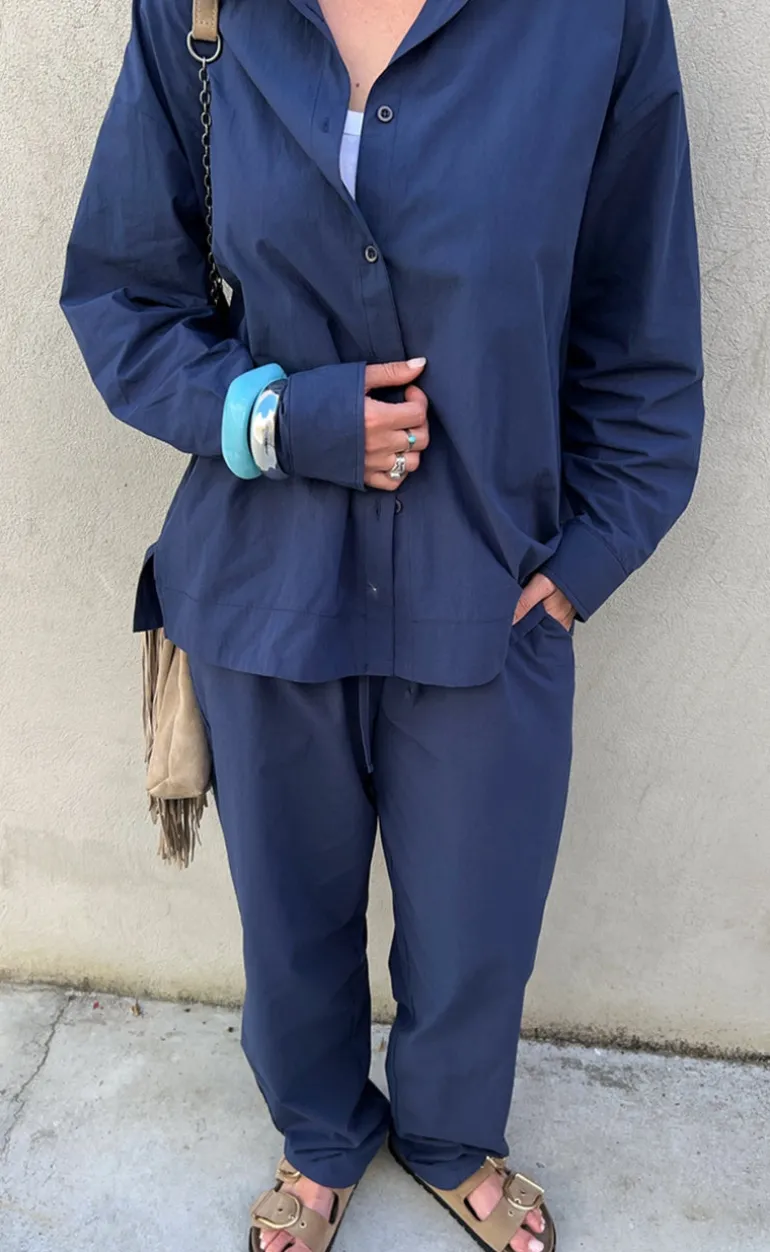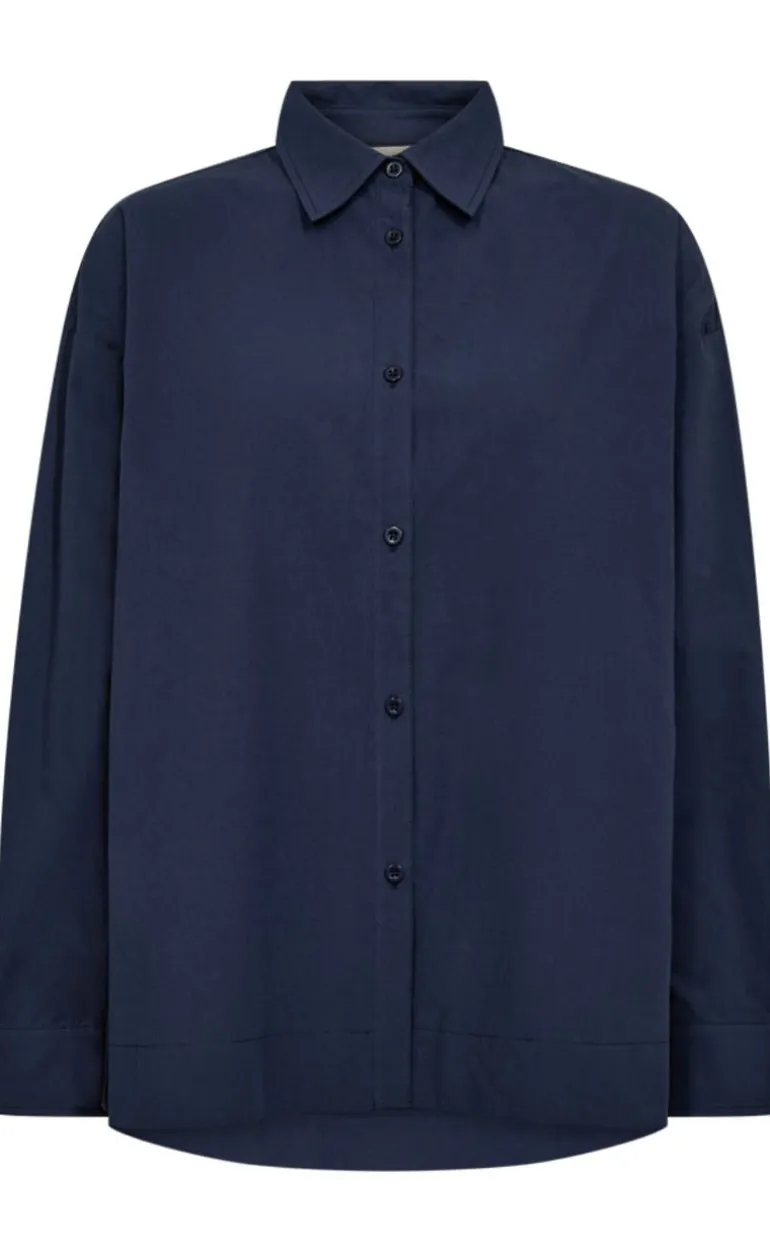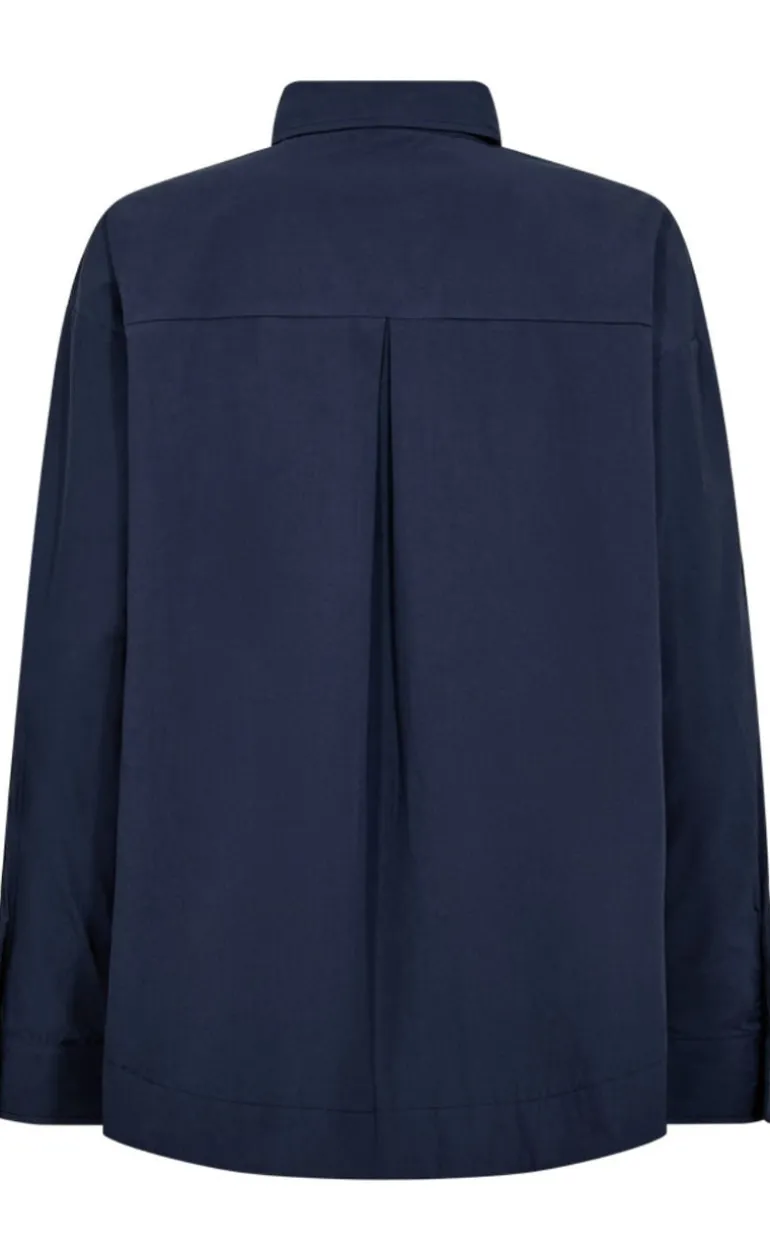 Feminin basic skjorte fra Freequent i navy med knappelukning.