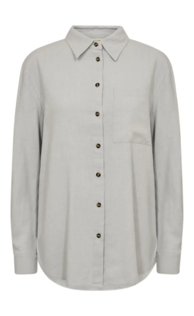 Moderne hør-skjorte fra Freequent i grå.