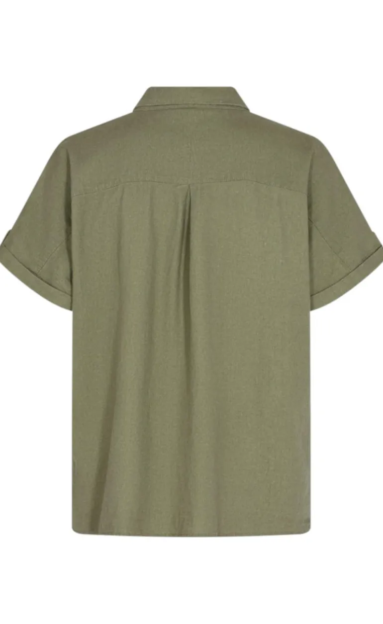 Moderne hør-skjorte fra Freequent i grøn.
