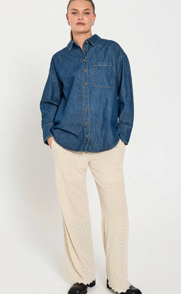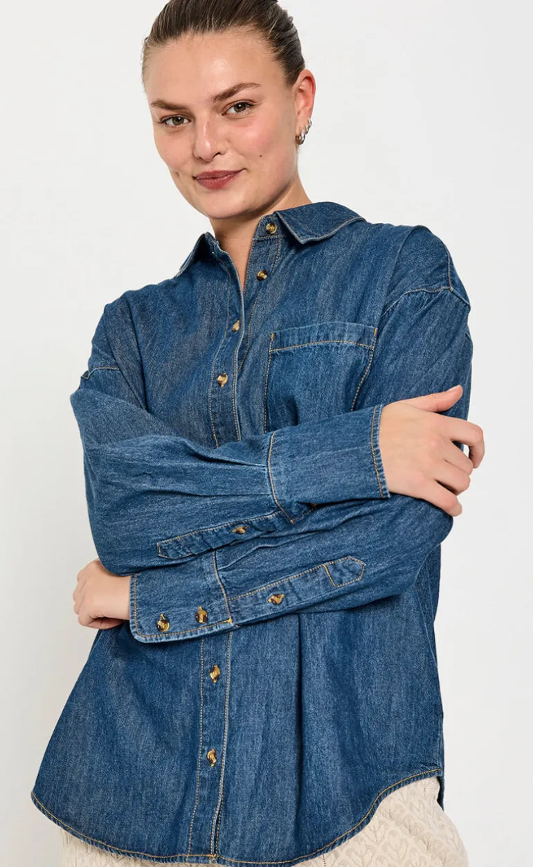 Denim skjorte fra Freequent i en medium blå denim farve.