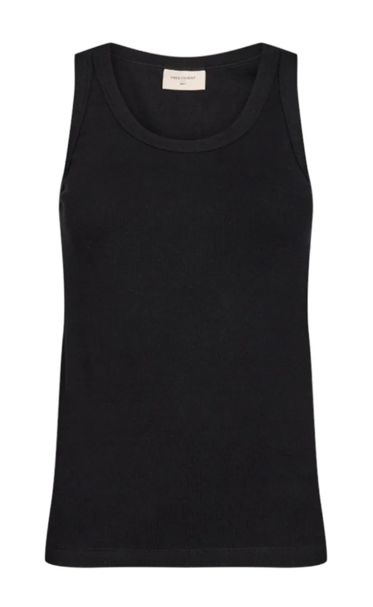 Basic top fra Freequent I sort, I en ribbet kvalitet.