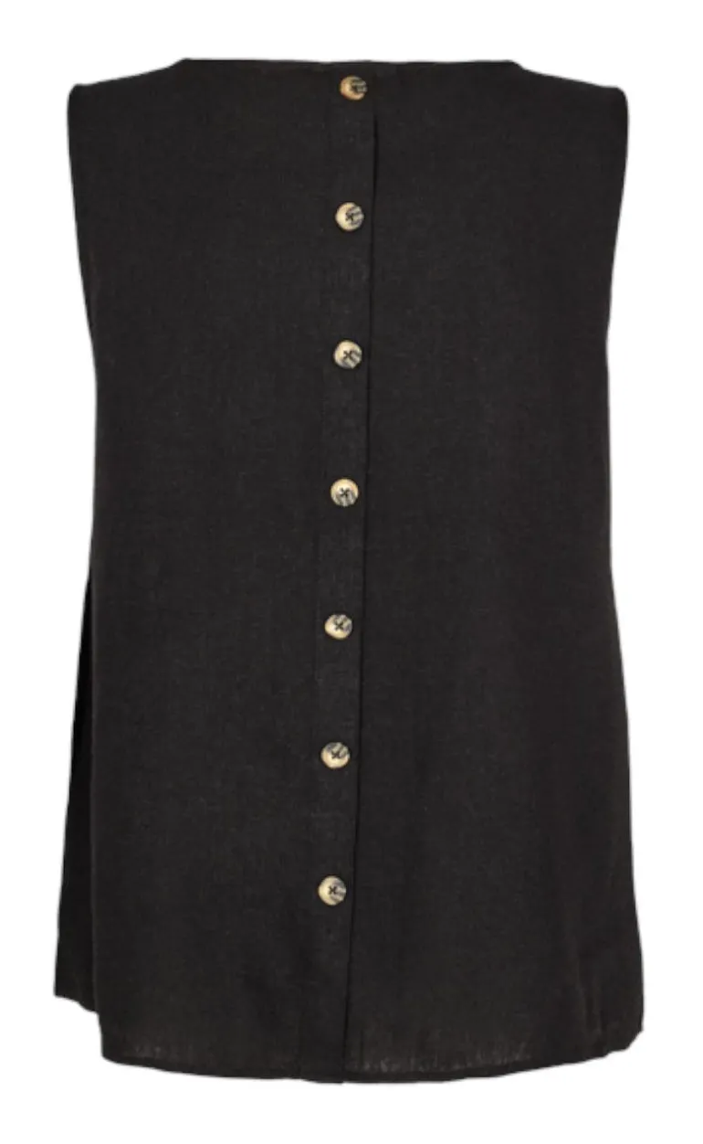 Toppen er ærmeløs og har en rund halsudskæring. Desuden har toppen knapper på ryggen.