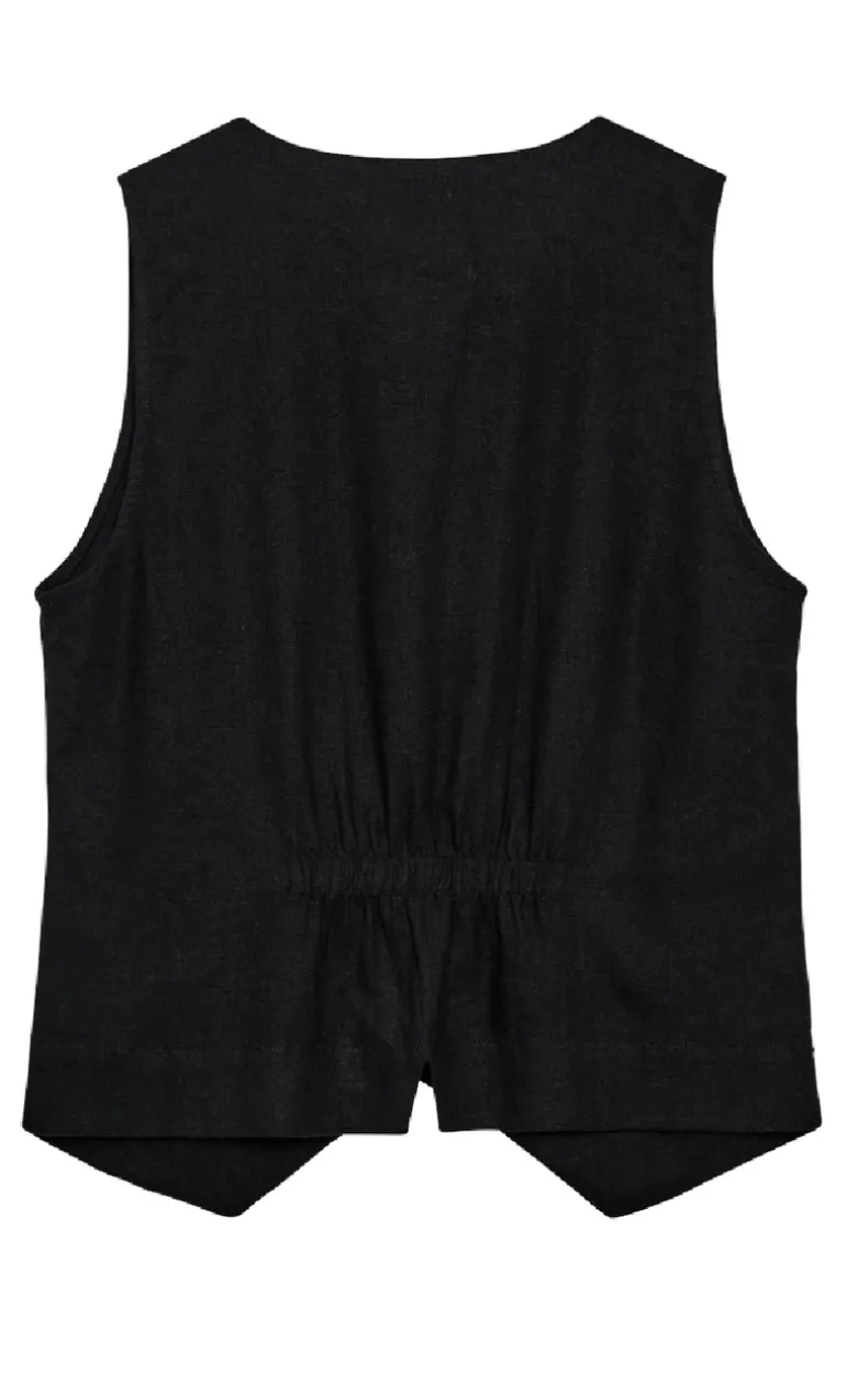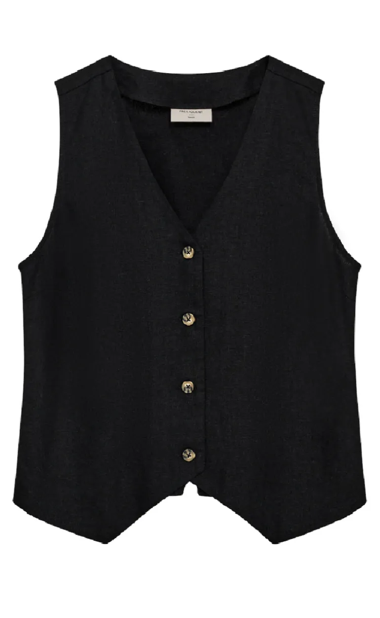 Lækker vest fra Freequent i sort, fremstillet i en dejlig hør blanding.