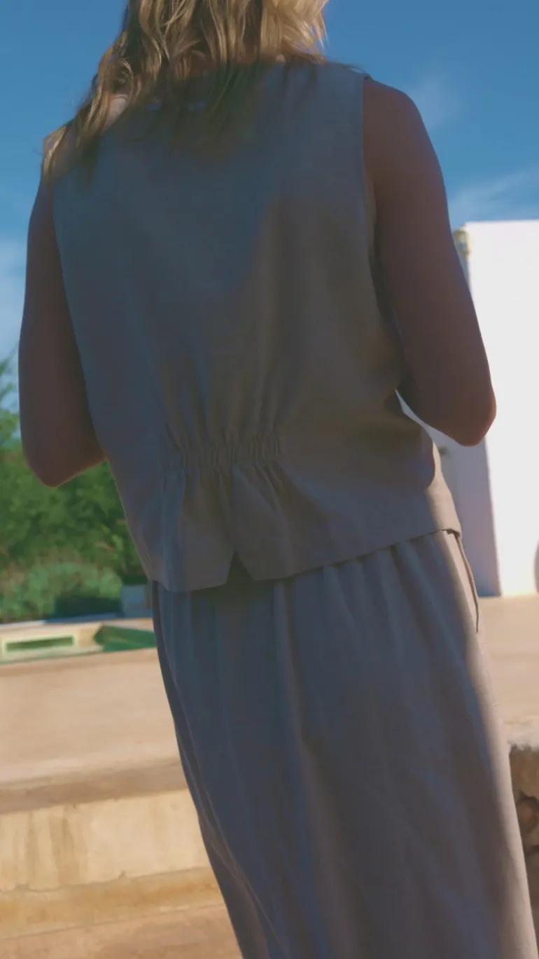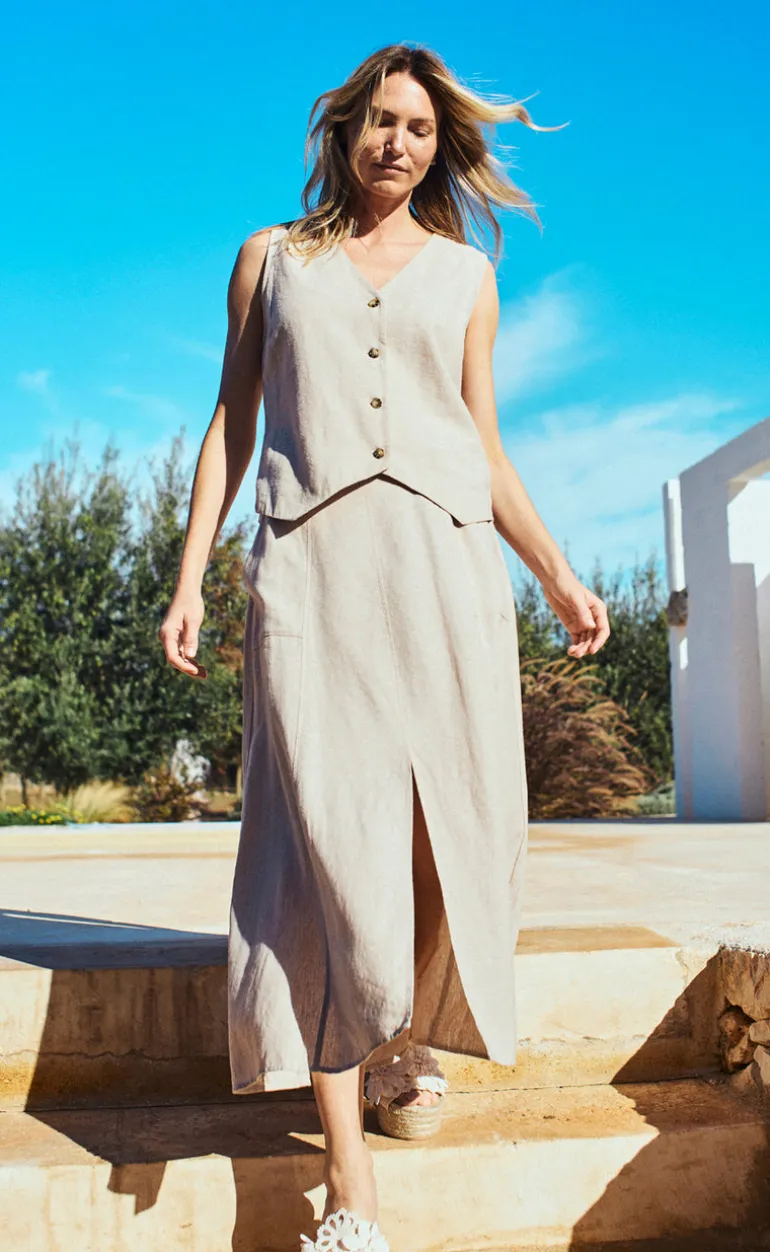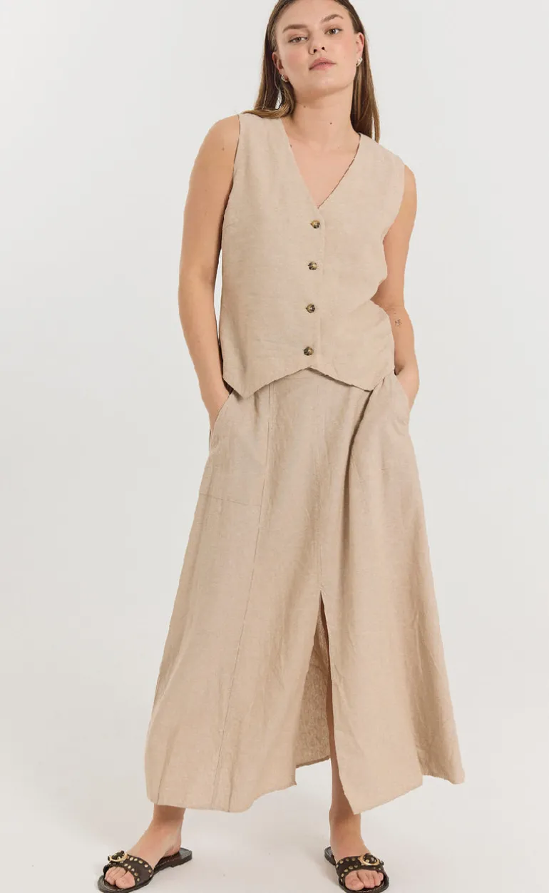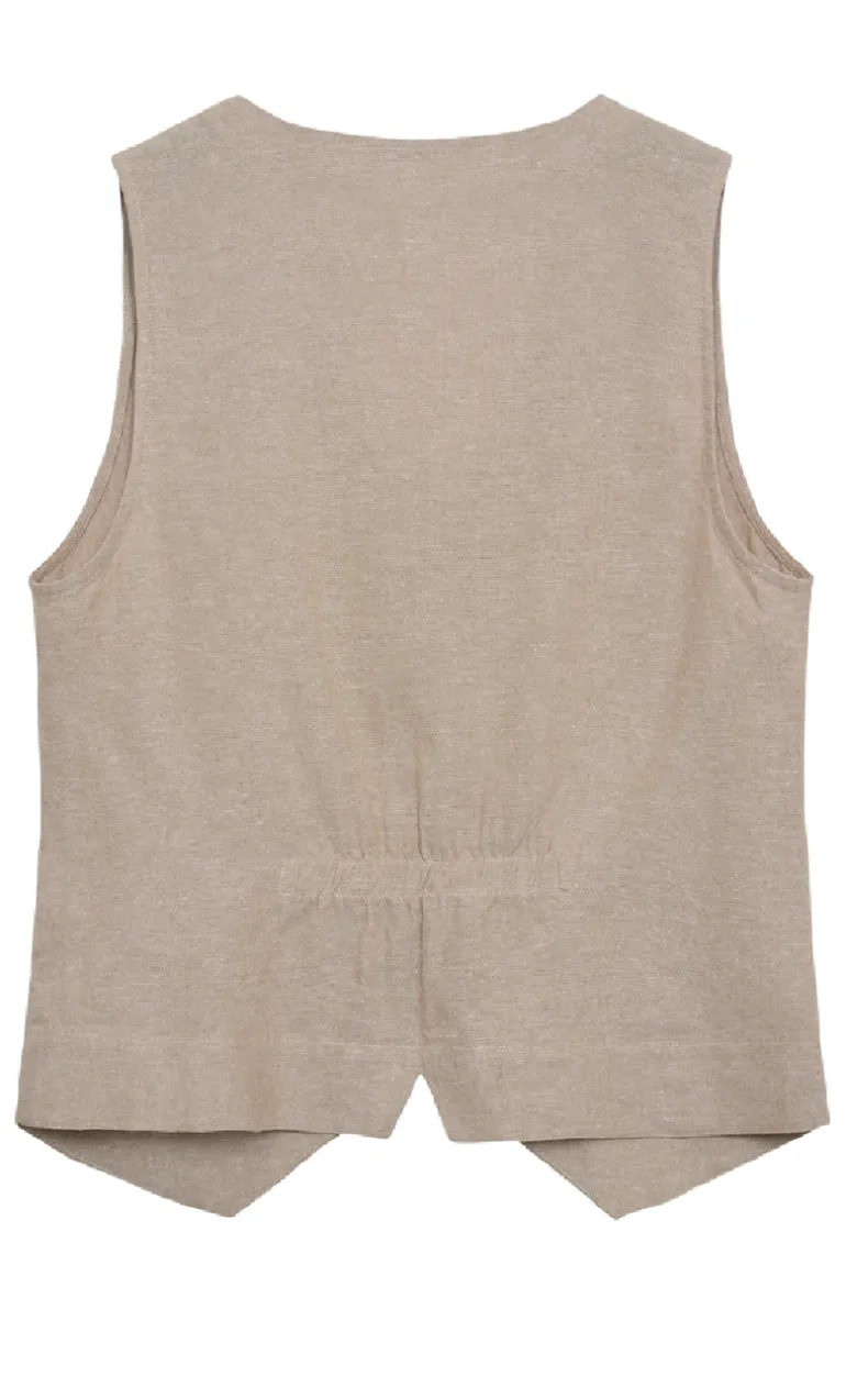 Lækker vest fra Freequent i beige, fremstillet i en dejlig hør blanding.