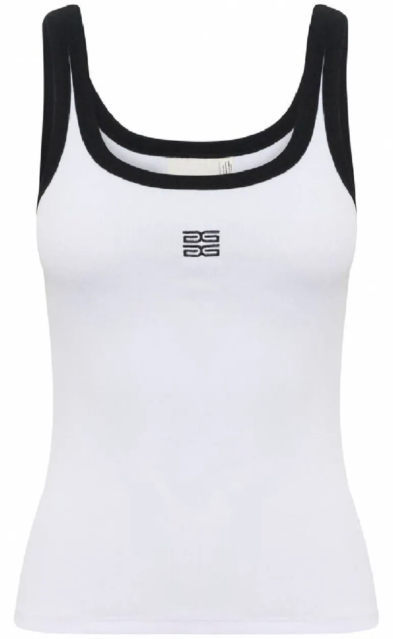 Dejlig og flot top fra Gestuz i hvid, med kontrast sygninger.