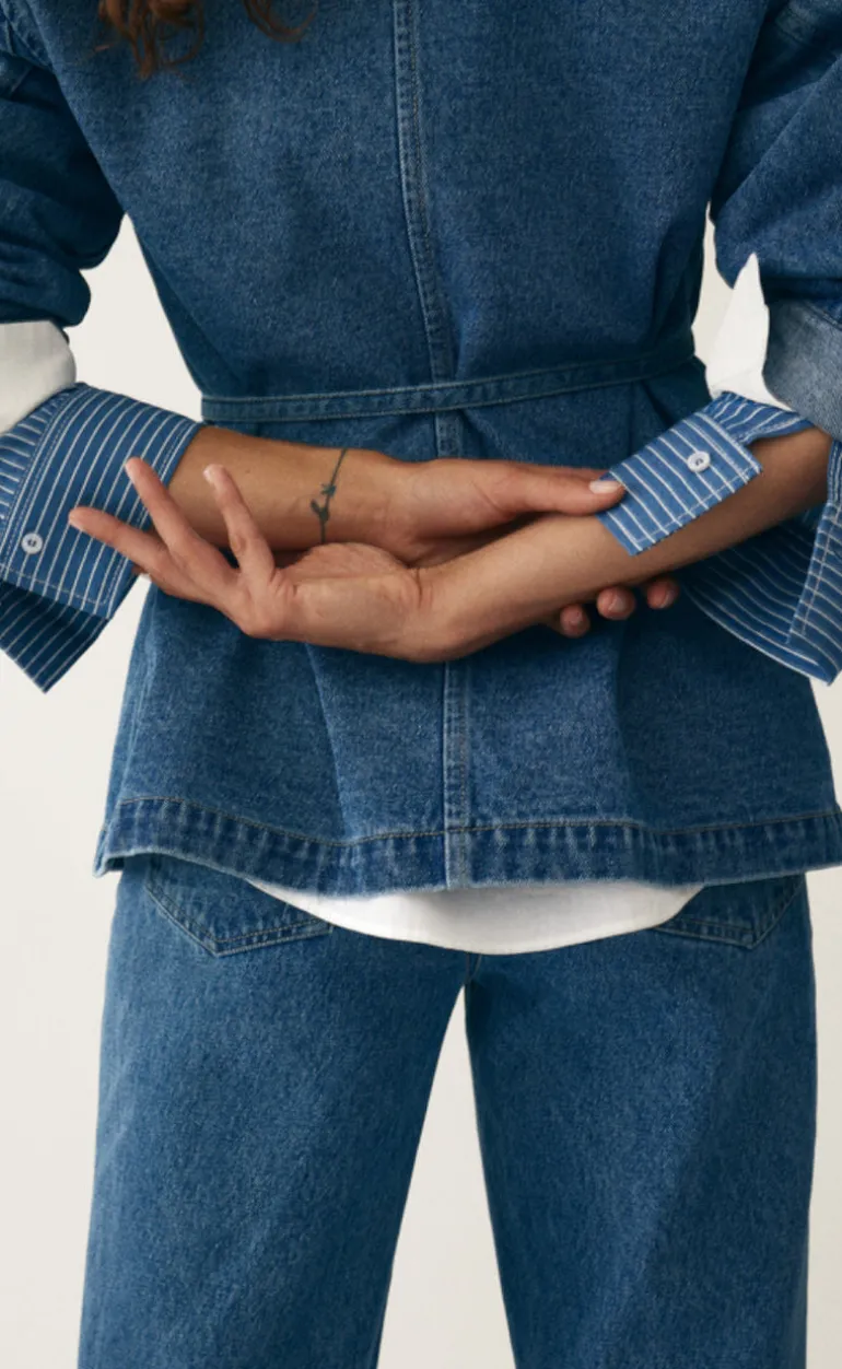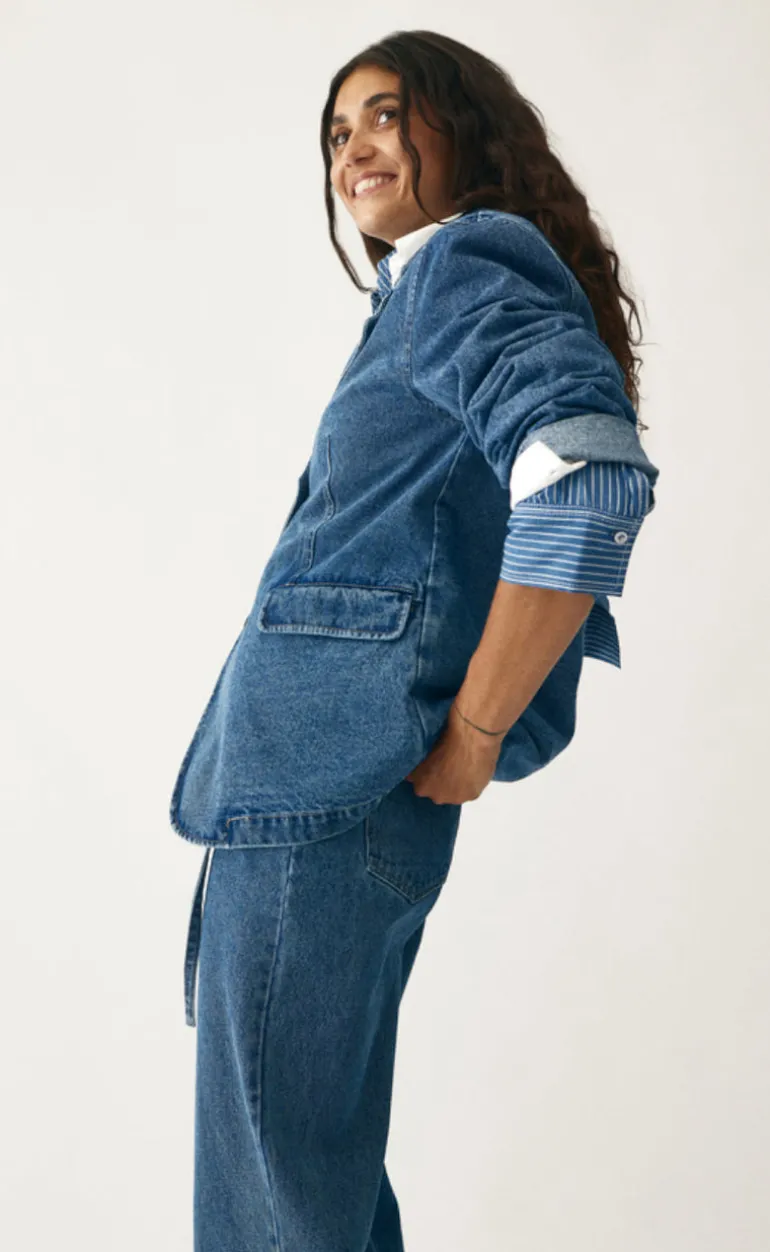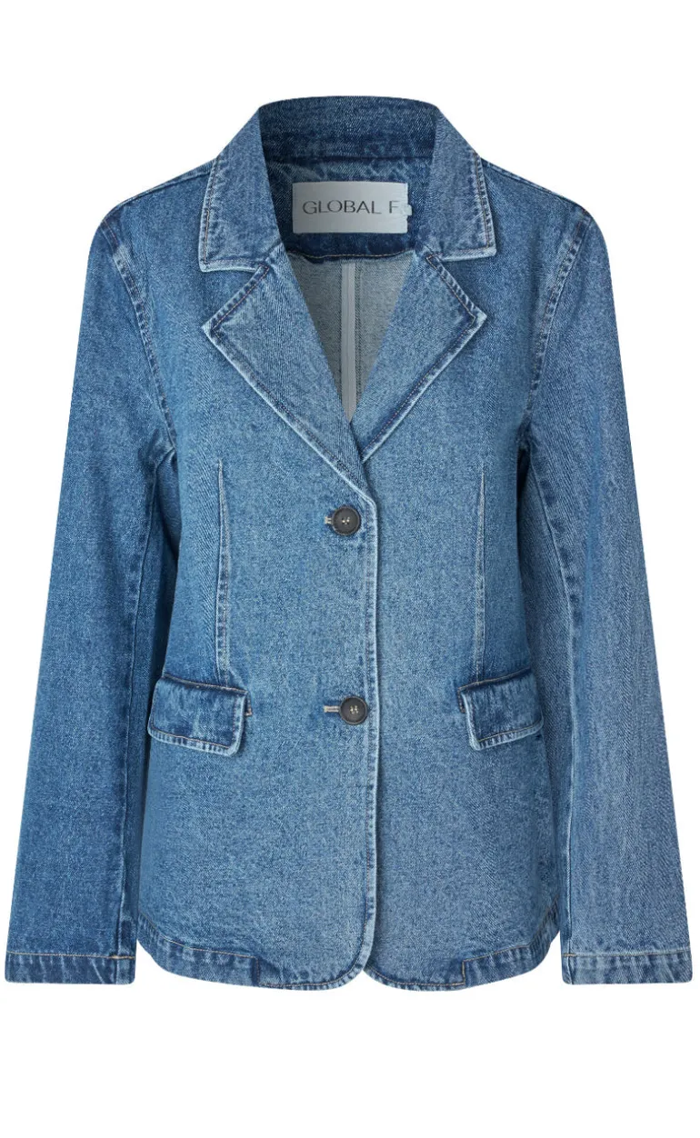Flot og dejlig denim blazer fra Global Funk i en blå farve.