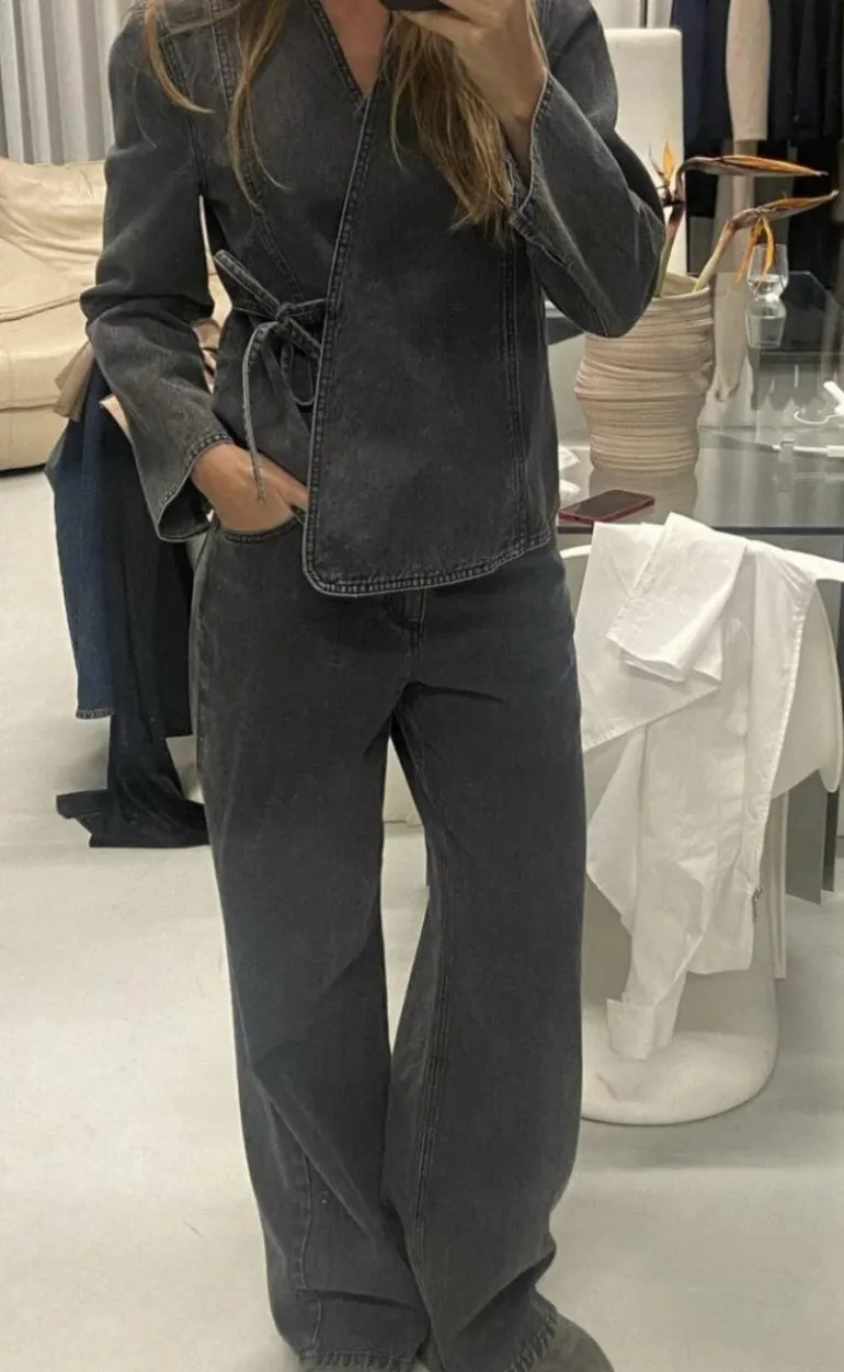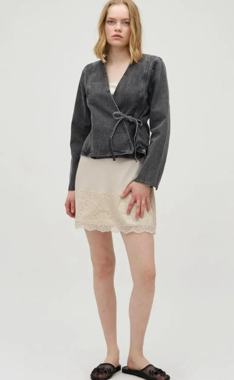 Den flotteste denim jakke fra Global Funk i mørke grå.