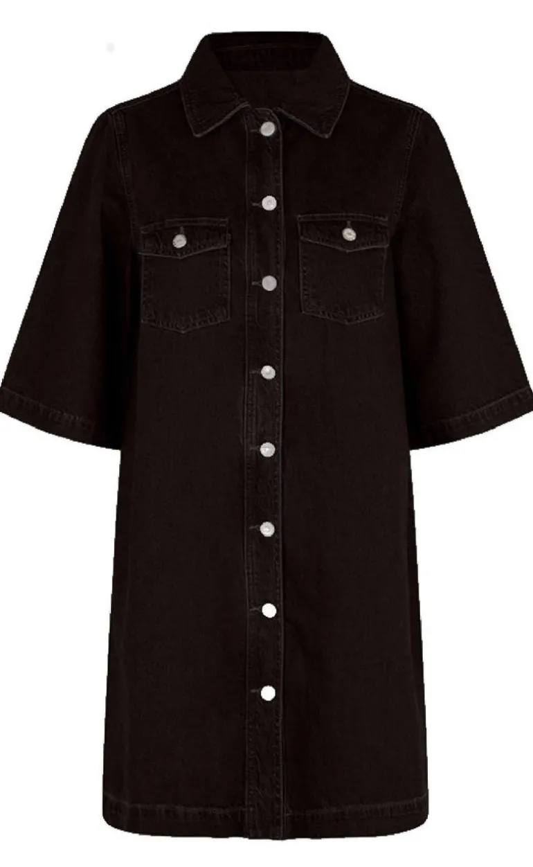 Kjolen har gennemgående knapper, korte ærmer og brystlommer.