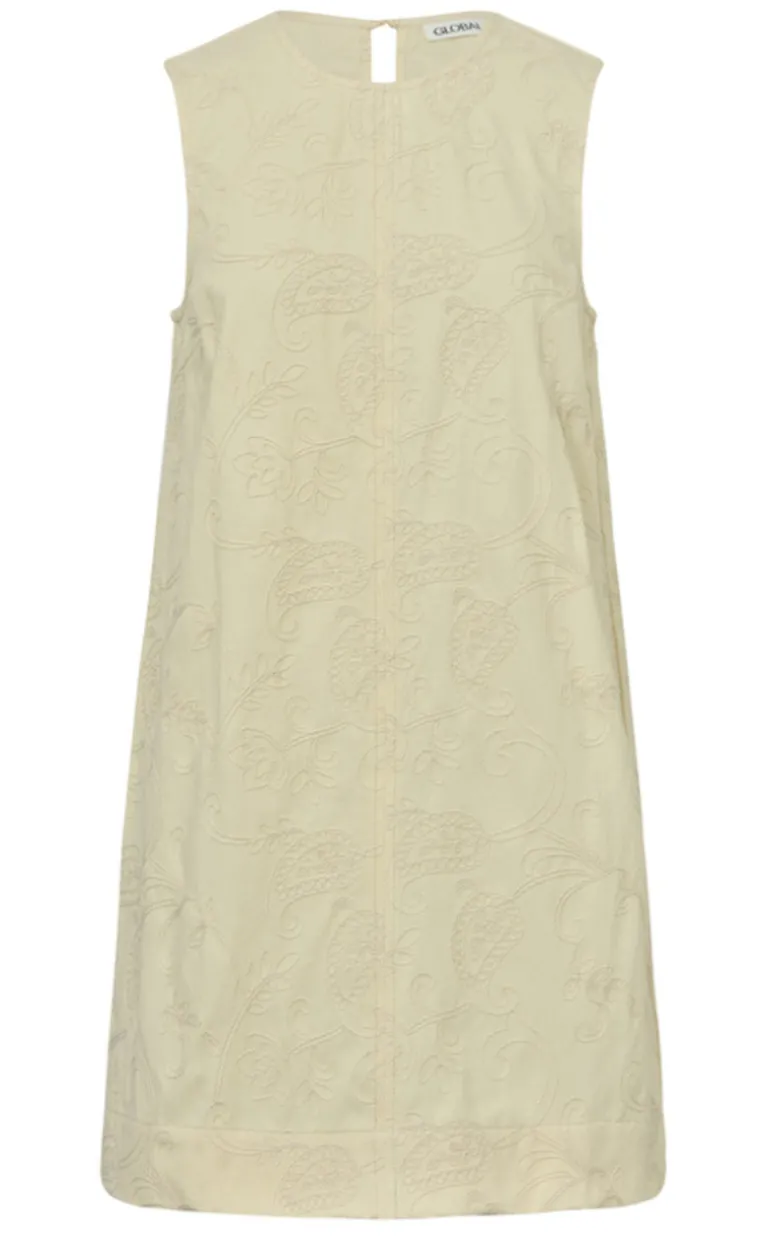 Kjolen har ingen ærmer og en smukt broderi mønster.