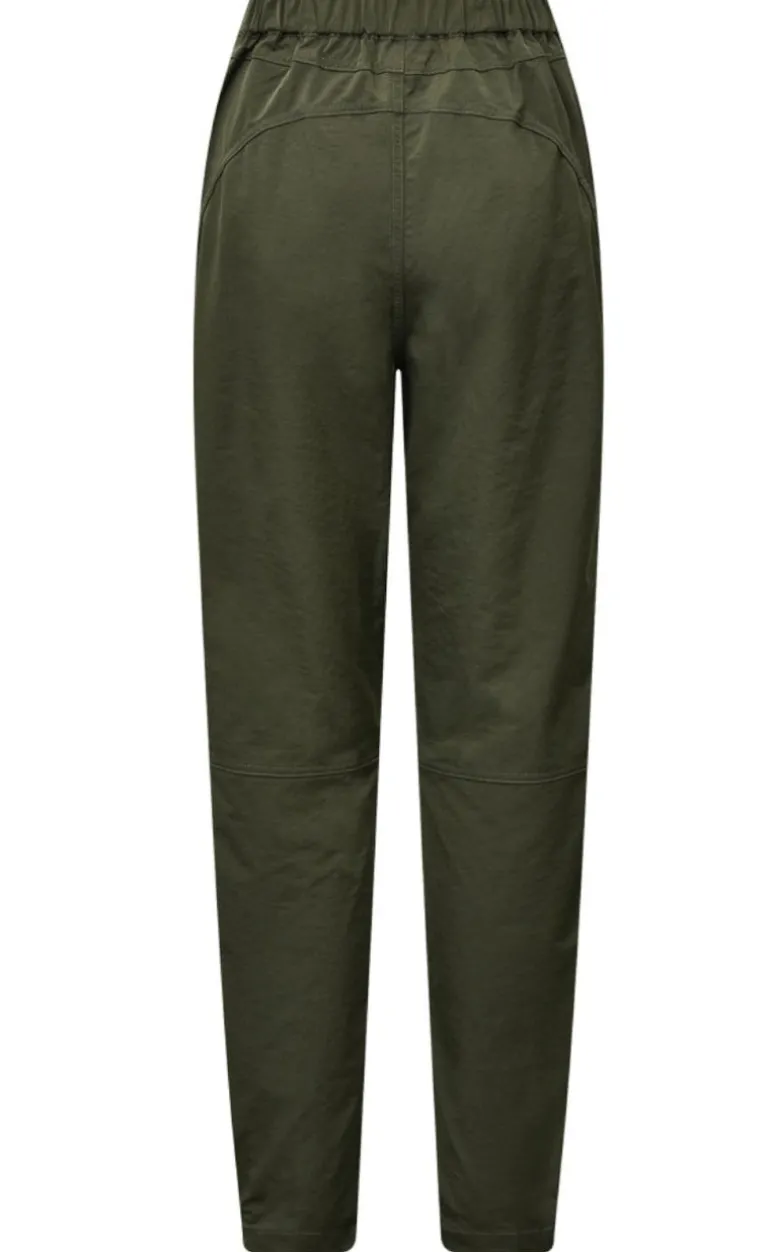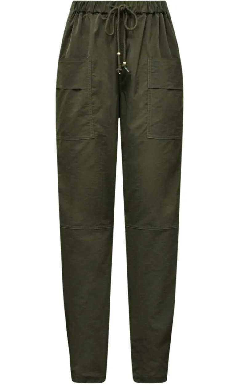 Bukserne har en løs pasform med elastik og bindebånd i taljen. Bukserne er fremstillet i en lækker blød kvalitet og har lommer foran.