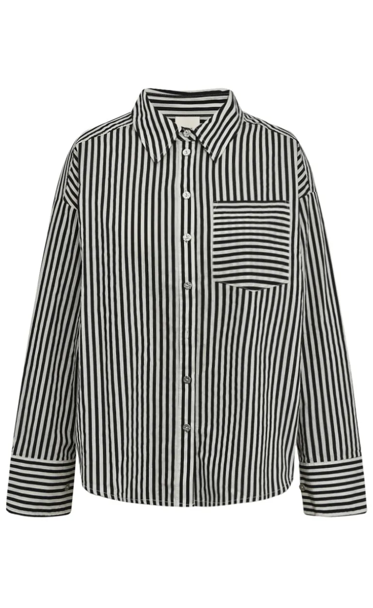 Cool stribet skjorte fra Gossia i sort og creme hvid, med et stort tal på ryggen.