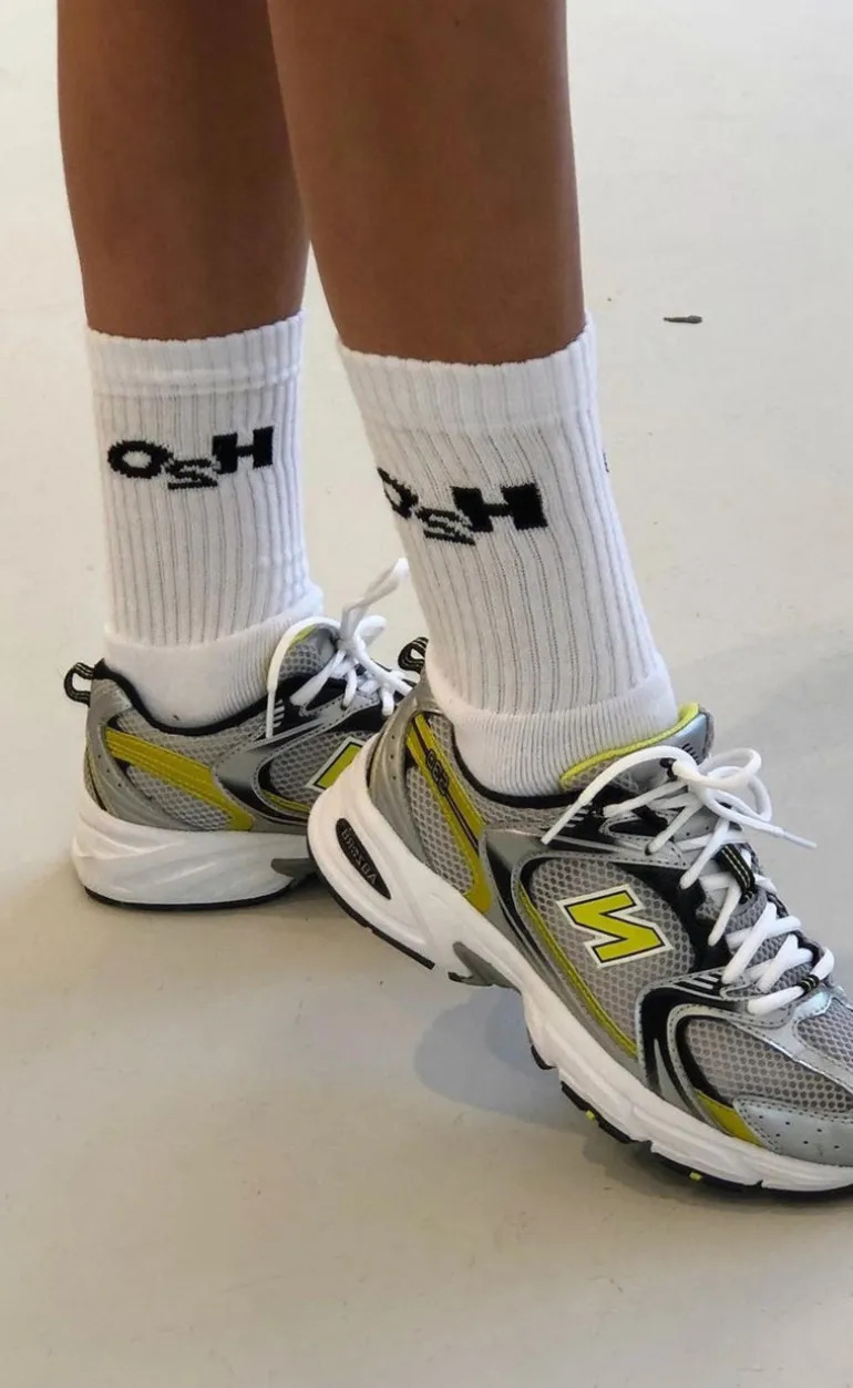 Sokkerne er lange og har det velkendte H2O logo på sig.