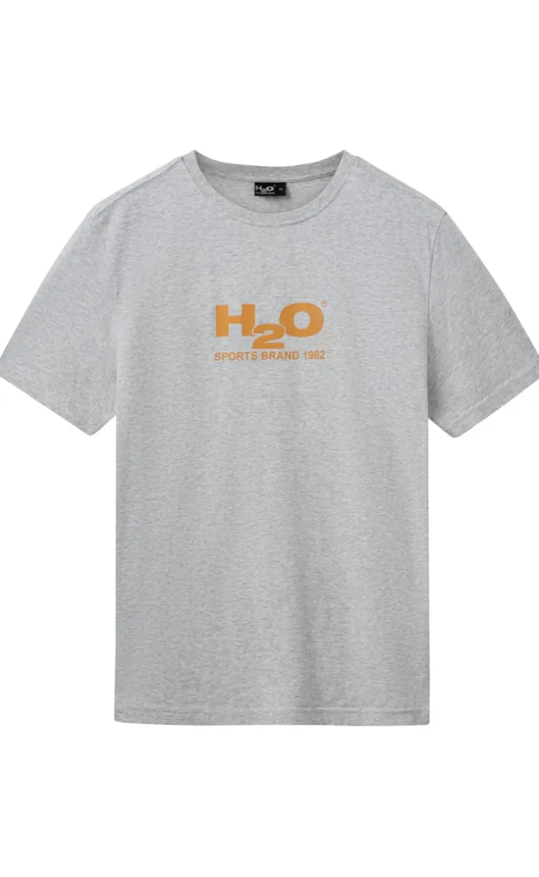 Flot og basic t-shirt fra H2O i lysegrå med det klassiske “H2O” logo fortil, i orange.